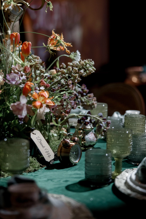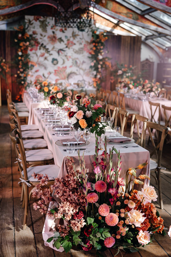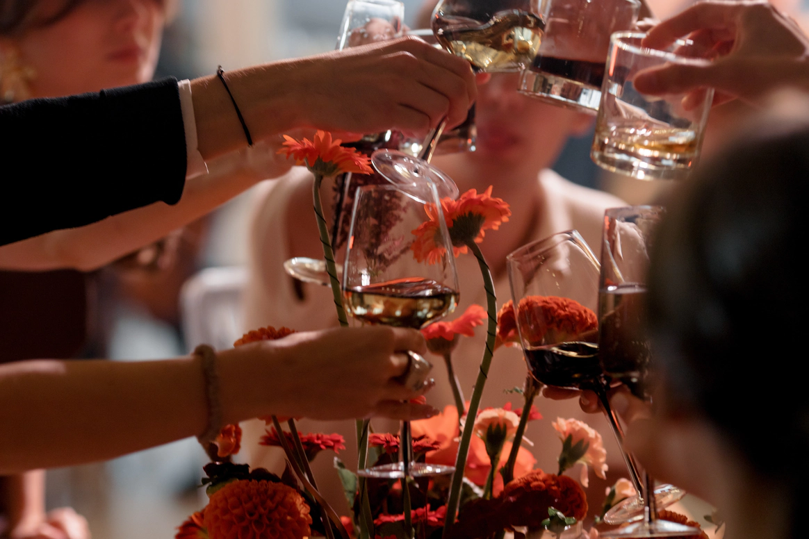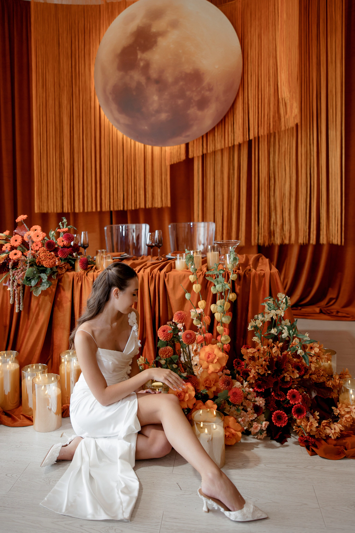 Декор поддержал концепцию современным и трендовым прочтением осенней эстетики. В оформлении преобладали оранжевые и чёрные акценты — смелое сочетание сезона 2025 года. Тёплые, тактильно приятные ткани, уютные скатерти и салфетки, а также флористика из ярких осенних цветов добавили пространству живости и камерного уюта.
