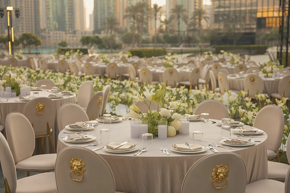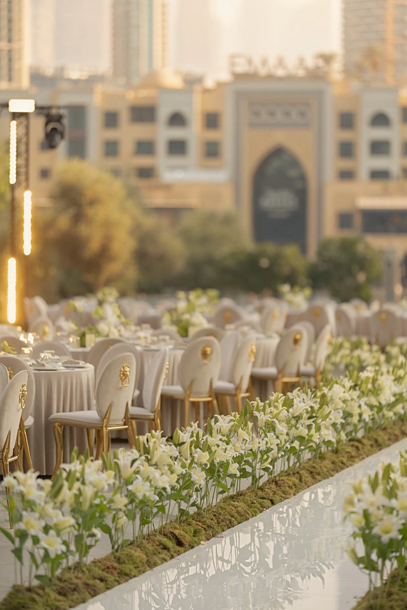 Масштабный свадебный проект NOVA Events UAE в Armani Hotel Dubai, расположенном у подножия Бурдж Халифы. Пространство отеля было полностью трансформировано под частное мероприятие с участием 600 гостей. Проект продемонстрировал экспертизу в работе с премиальными площадками, крупными гостевыми форматами и реализацией сложных задач в условиях ограниченного времени, ведь на монтаж у нас было буквально несколько часов.