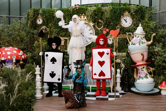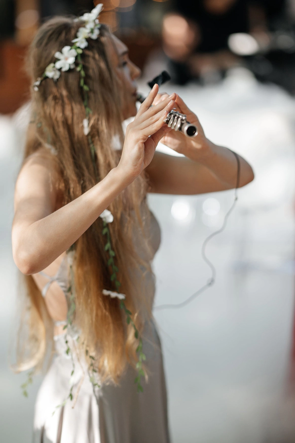 Неожиданно, словно из самой глубины нашего таинственного сада, начинают играть живые инструменты. Настоящие нимфы в струящихся платьях разместились меж деревьев и звали наших гостей на звук скрипок и флейт.