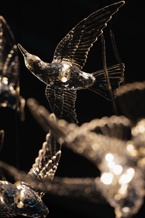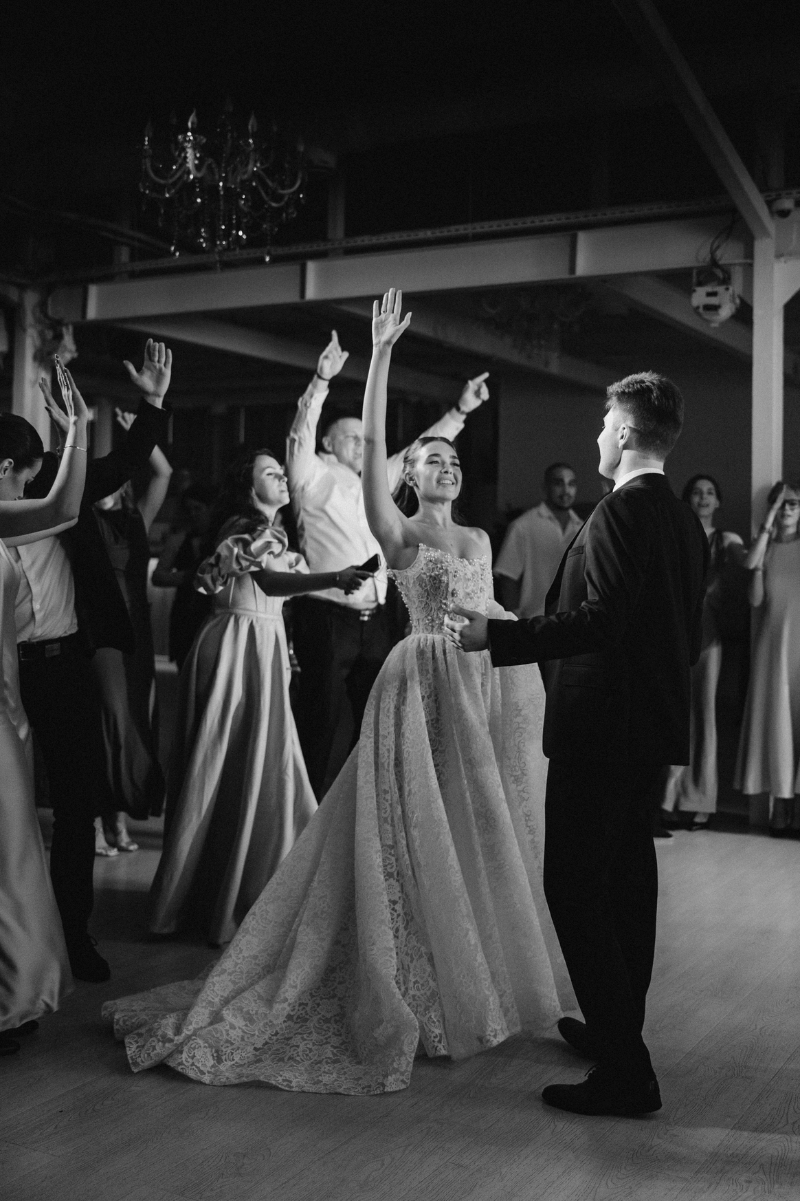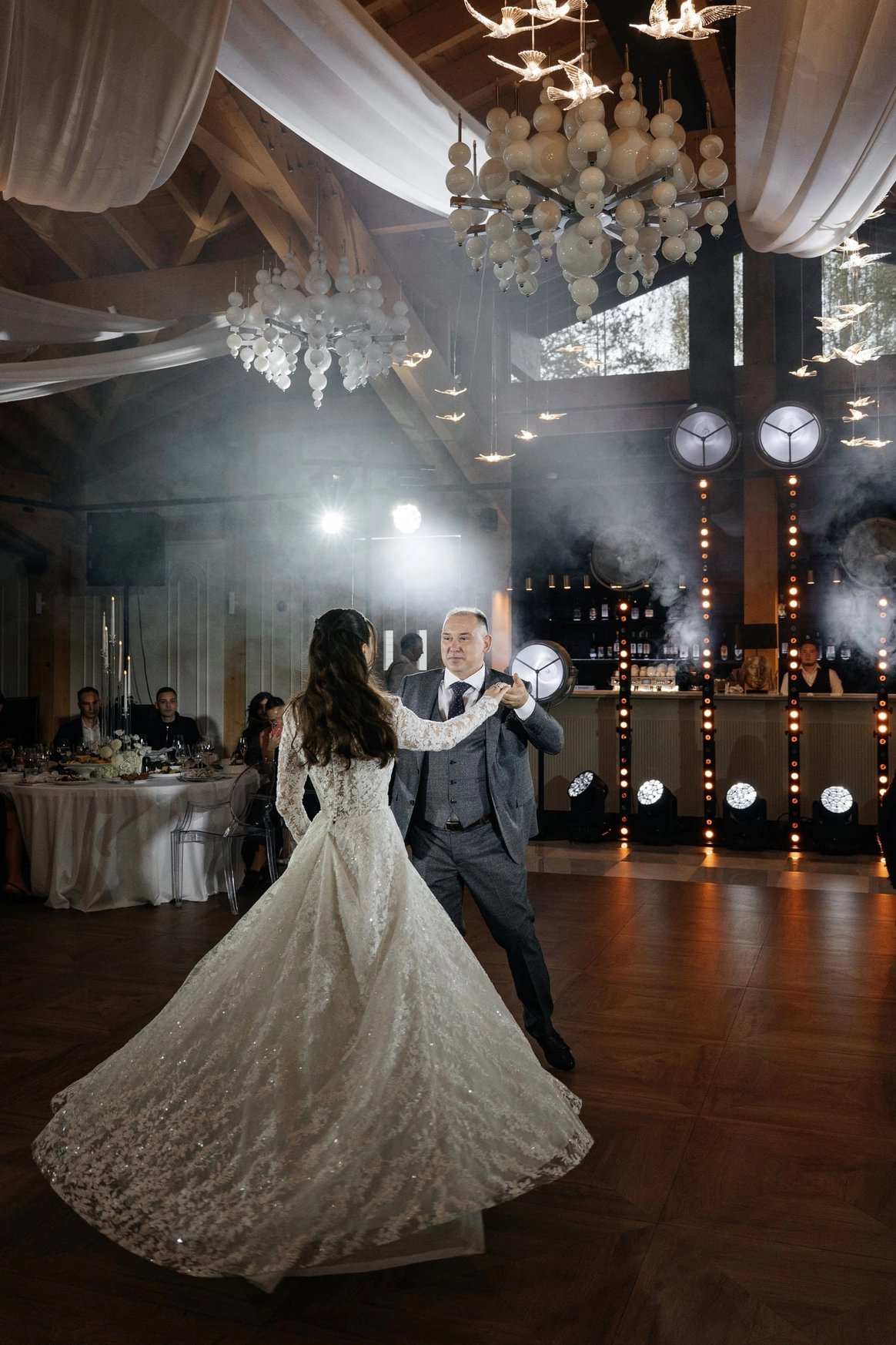 Но затем она просто влюбилась в светящихся птиц, которыми был украшен весь потолок нашего зала-оранжереи. Они наполнили зал тем самым теплым светом, который придал вечеру камерности и теплоты, о которой мечтала пара.