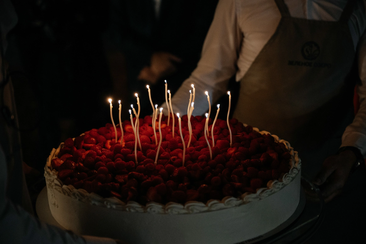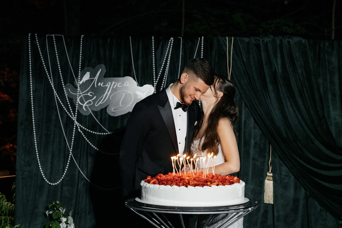 Программа была наполнена живой музыкой, теплыми словами семьи, танцами, а закончилась красивым тортом от мамы невесты и салютом мыльных пузырей.