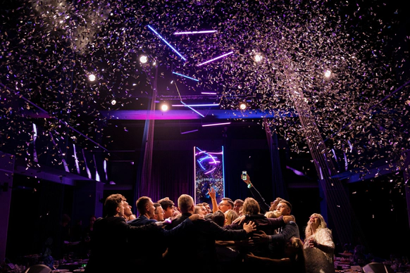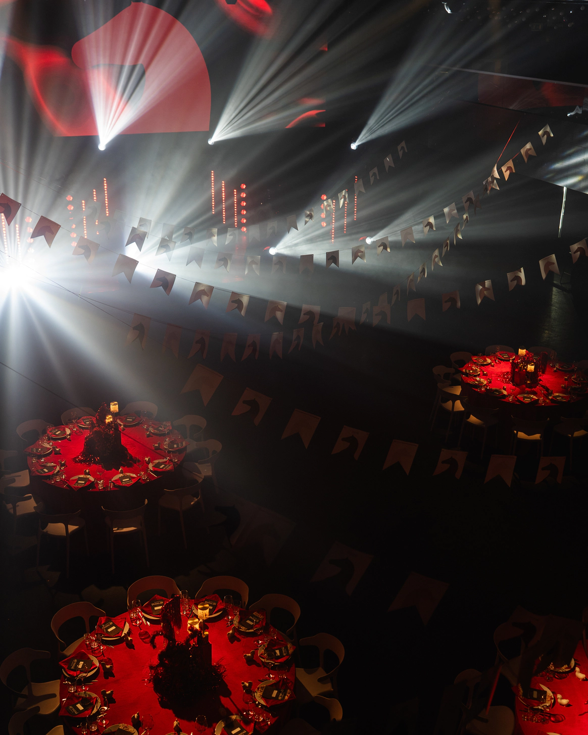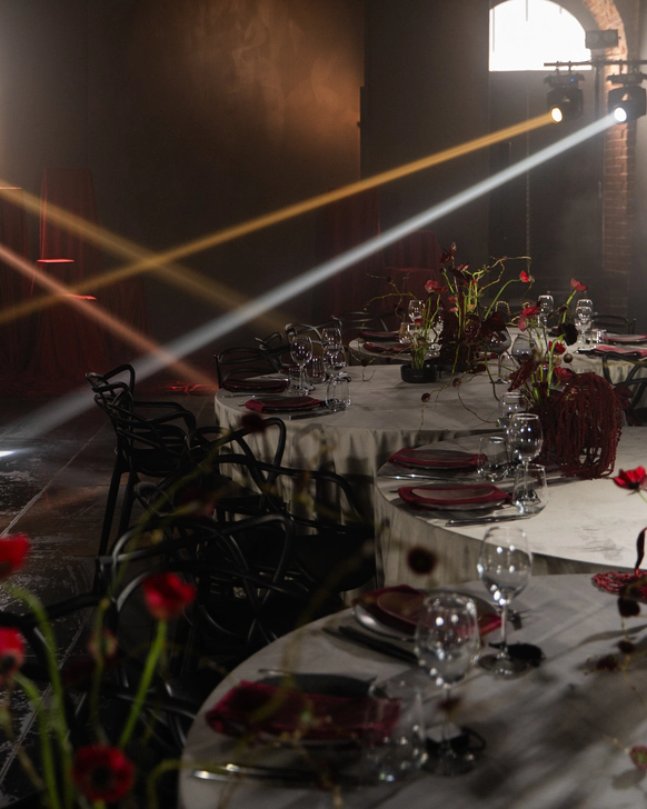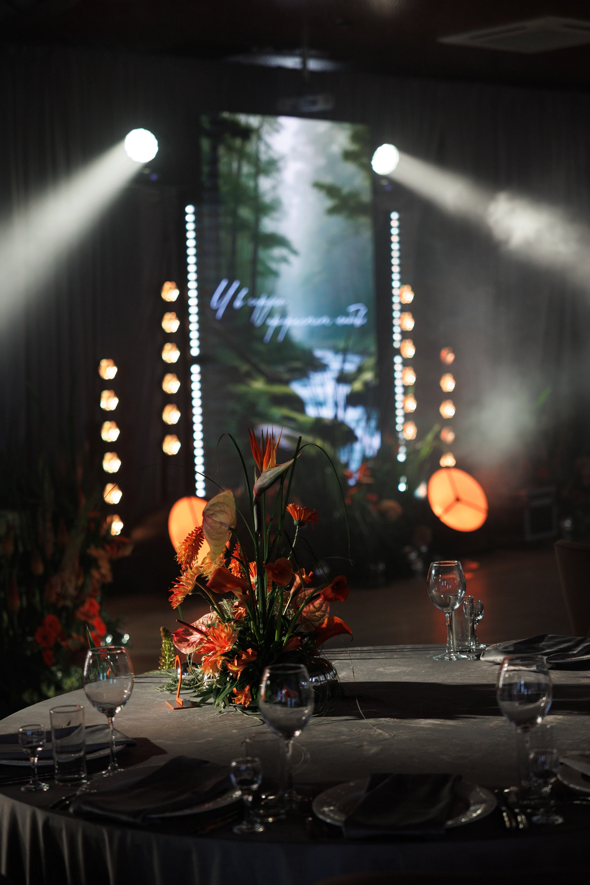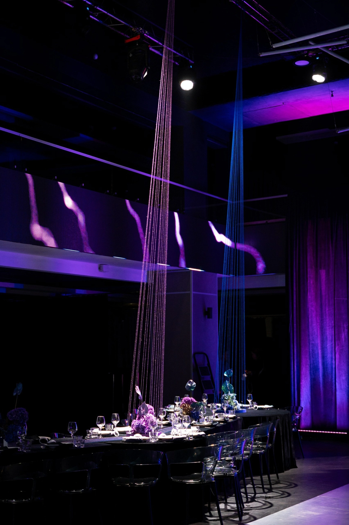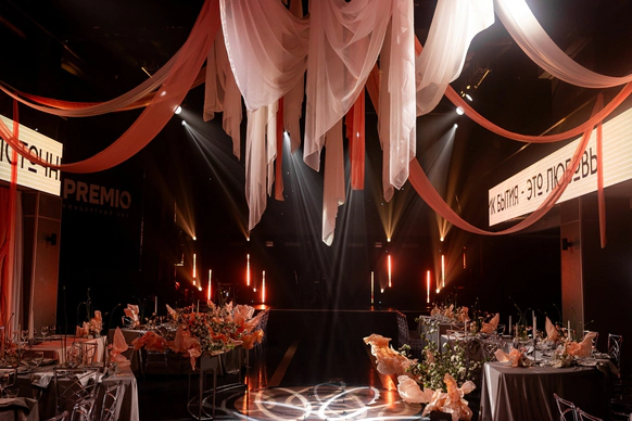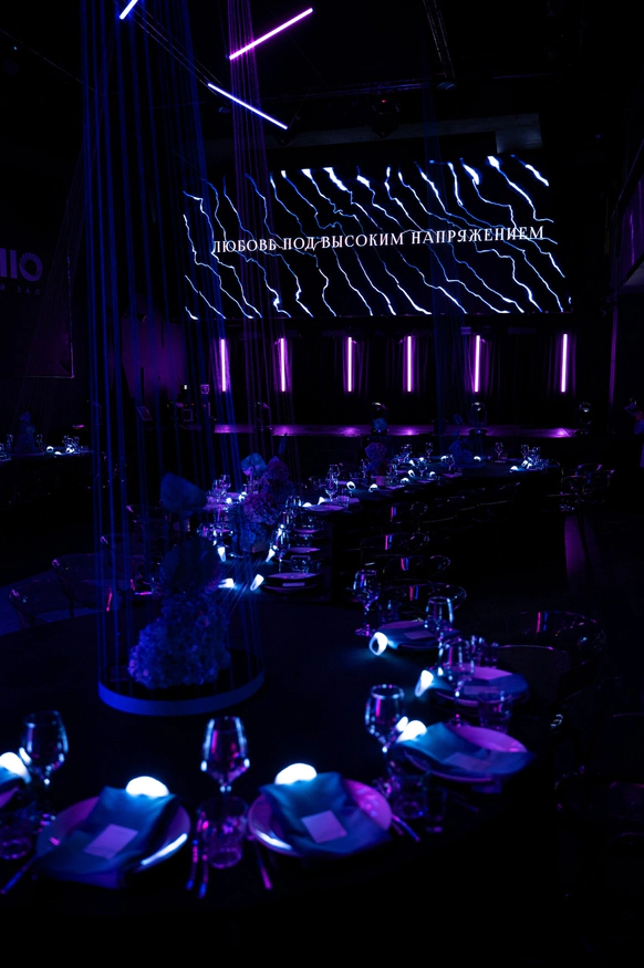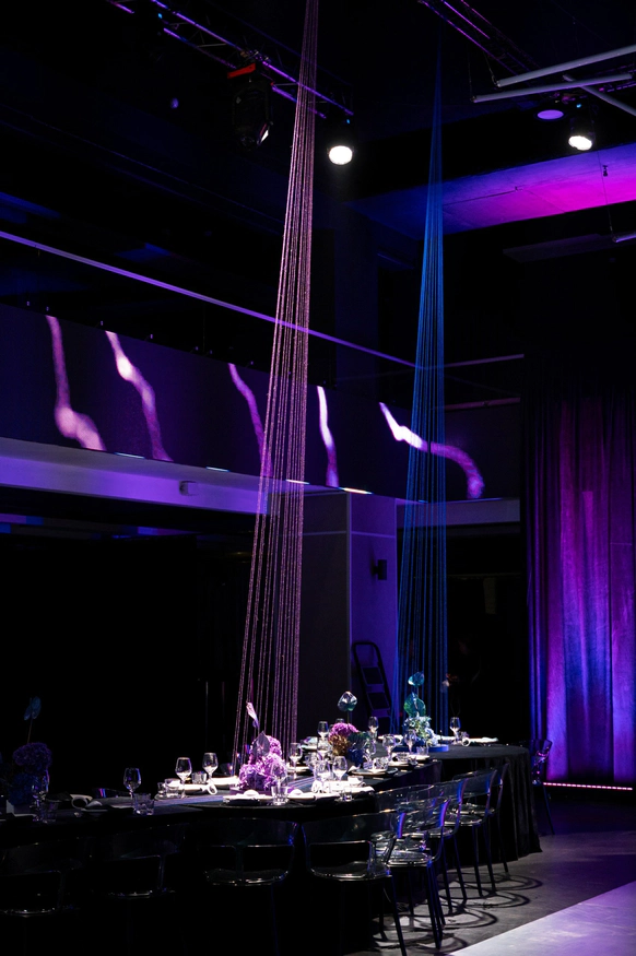 Пространство проектировалось как живая структура, способная «связывать» людей, состояния и моменты вечера. Свет, сценография, ритм и композиция формировали ощущение погружения в среду, где всё работает не фрагментарно, а как единое полотно.