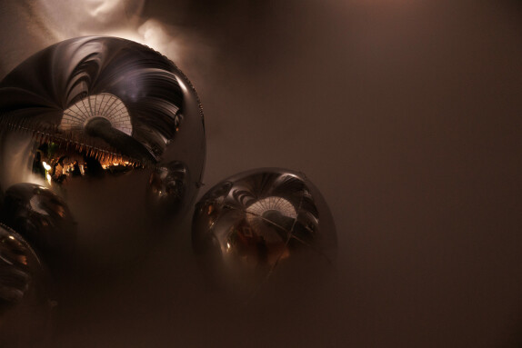 Основной зал имеет форму сектора — четверти круга. Все проекты которые ранее реализовывались здесь дисгармонично выстраивались в пространство, обходя главный элемент зала, который все старались обходить стороной. Мы же решили координально пересмотреть это, перекрыв 1/4 зала 15-метровым конструктивом и акцентом стал зеркальный столб, вокруг выстроив мистическое поле с воздушными зеркальными каплями росы.