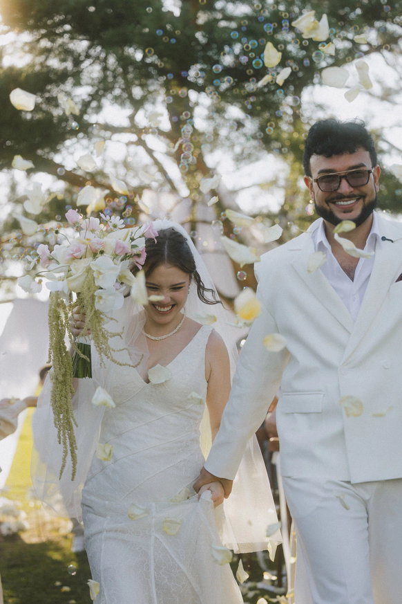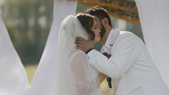 Через год, после предложения на берегу океана, они решили устроить камерную свадьбу для самых близких.