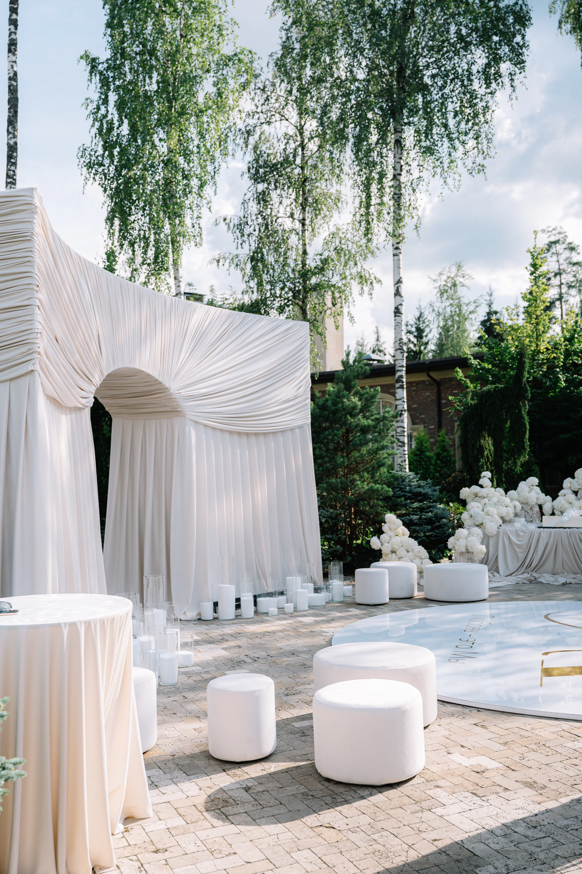Мы создали атмосферу уютной свадебной вечеринки с лёгким итальянским вайбом на загородной площадке в Подмосковье.