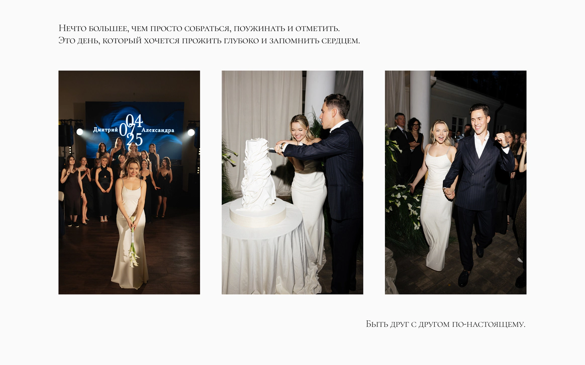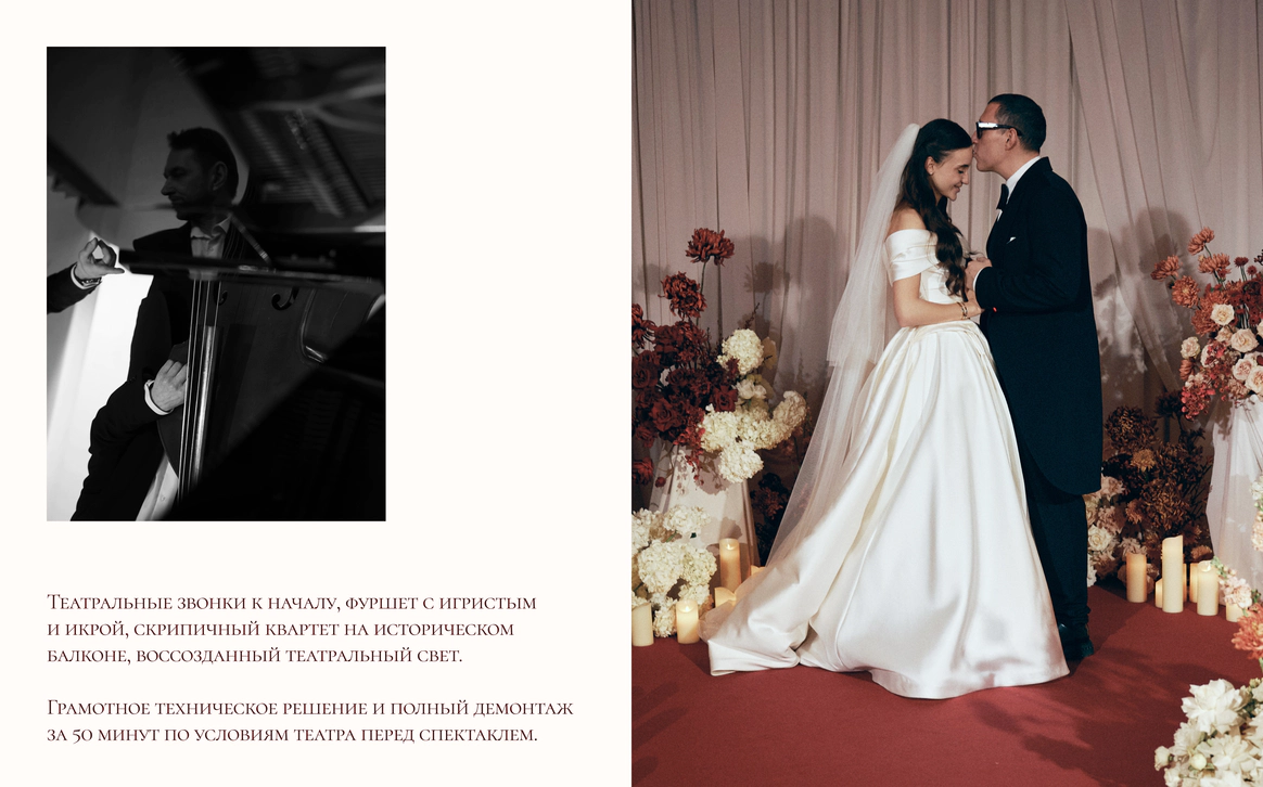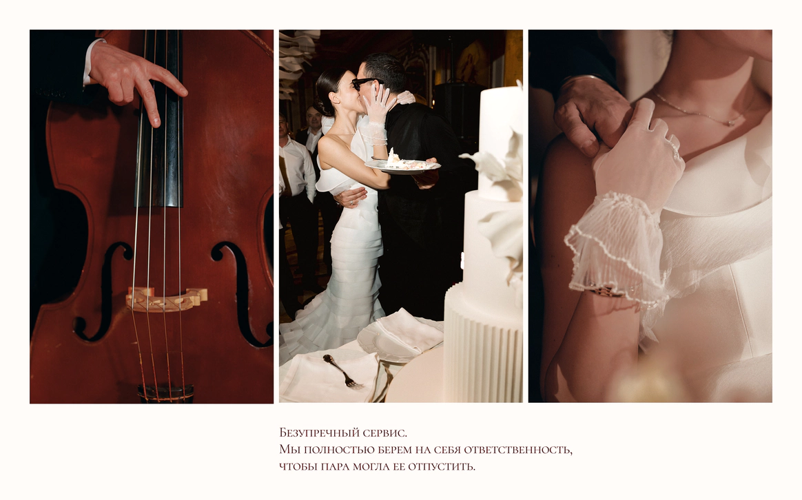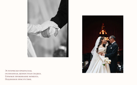 POLOTNO - высокая культура свадьбы. Организовываем премиальные события для психологически зрелых пар, которые ищут в этом дне сервис, глубину и подлинность. Миссия бренда: напомнить о настоящем смысле свадьбы. Мы умеем перевести фокус с внешней эффектности на внутреннее ощущение момента. Безупречный сервис. Полное сопровождение. Забота о каждом госте. Прозрачность на всех этапах. Премиальность без вычурности. Благородный вкус. Надежность и опыт. Человеческое тепло. Свадьба - единое полотно, в котором все связано. За нашими плечами - многолетний опыт работы в индустрии. Мы умеем предвидеть то, что другим кажется неожиданностью. При любых обстоятельствах сохраняем спокойствие и ясность мышления. Члены жюри Wedding Awards, TOP100 Awards. Финал и шорт-лист Wedding Awards, White Wedding Awards. Основатель - Марго Москалева.