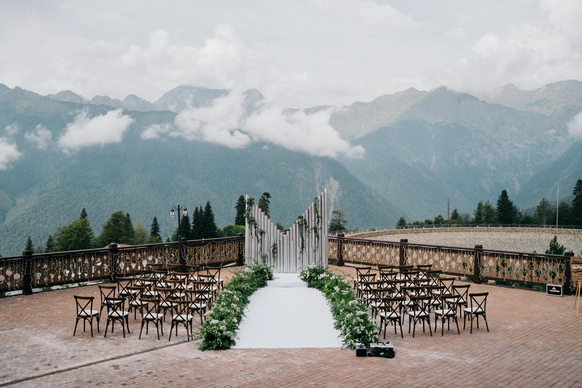 Курорт «Газпром Поляна» — всесезонный семейный курорт, расположенный в Красной Поляне (г. Сочи). В состав Курорта «Газпром Поляна» входят два гостиничных комплекса: «Гранд Отель Поляна» 5*, «Поляна 1389 Отель и Спа» 5* (самый высокогорный гостиничный комплекс в Сочи). В составе курорта - комплекс современных канатных дорог и трасс мирового уровня, Лыжно-биатлонный комплекс «Лаура», общественно-культурный центр «Галактика», где расположен аквапарк с открытом бассейном (откуда открывается шикарный вид на горы), кинотеатр, боулинг, бильярд и другие объекты. Курорт завоевал репутацию места, где проходят деловые встречи и конференции международного уровня с участием глав государств, политических деятелей и руководителей крупных компаний. Для мероприятий любого формата - 19 конференц-залов вместимостью от 20 до 1000 человек и необходимым современным оборудованием, переговорные VIP-зоны, более 20 ресторанов и кафе. Тимбилдинги, съезды, спартакиады, презентации можно провести и на Лыжно-биатлонном комплексе «Лаура». Организовать семейное или корпоративное событие есть возможность и на плато Псехако. На высоте 1440 метров, в окружении пиков гор и первозданной кавказской природы, для мероприятий устанавливают белоснежные шатры. Свадьба в горах – очень романтичное решение – запомнится и молодоженам, и их гостям. Для создания праздничной атмосферы – изысканный декор цветами, приятная музыка, церемония обмена кольцами, трогательные слова любви на фоне восхитительных пейзажей.