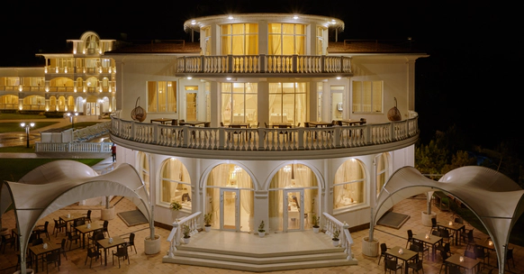 Словно графская усадьба, расположился на юго-западном побережье Крыма событийный отель "Превысоковъ". Легко представить, как граф прогуливается по уютной территории, как отдыхает в апартаментах с террасами с видом на море, как пьет утренний кофе, щурясь от крымского солнца, как принимает гостей в роскошных залах и наслаждается закатами под разговоры о прекрасном и вечном. А теперь представьте, что граф — это вы. В отеле "Превысоковъ" есть все, чтобы почувствовать себя настоящим аристократом: светлые и просторные номера, ресторан с 3 залами и террасами, СПА-комплекс, бассейны, соляная пещера, белоснежный шатер для пышных торжеств, светодинамический фонтан, невероятные закаты и абсолютное умиротворение. "Превысоковъ" — это благородство, статус и комфорт, воплощенные в отдых для истинных ценителей.