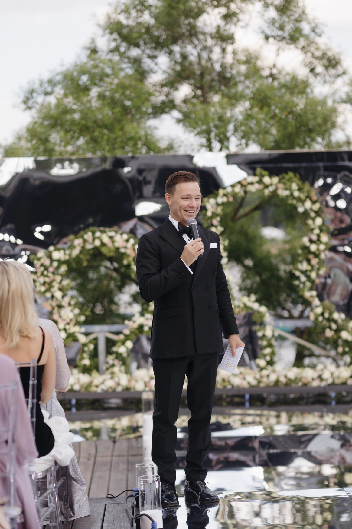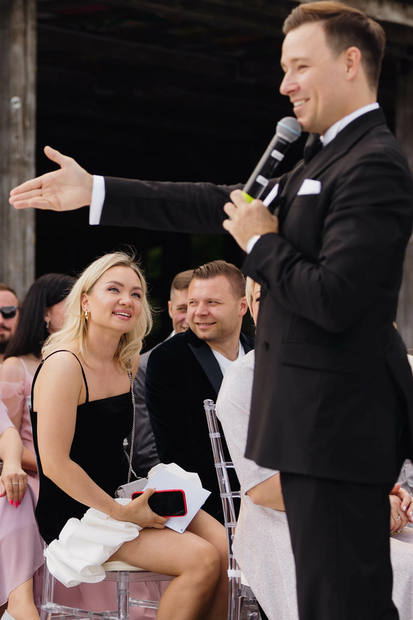 — Давайте знакомиться, я Глеб Ровинский. — Мне 35 лет. Инженер по образованию (МГТУ МИРЭА) + несколько лет работал в Роскосмосе. Иногда повторяю тему своего диплома перед мероприятием — просто чтобы размять дикцию. Почти чёрный пояс по каратэ (2 кю). Так что если вдруг на свадьбе начнётся драка — теоретически смогу разнять. Но только теоретически. К счастью, до практики пока не доходило. D-класс по бальным танцам. Если вдруг танцпол не запускается — могу помочь, но тоже теоретически. Английский — upper-intermediate. Учился в Англии и Ирландии, поэтому могу вести мероприятия на двух языках. Не пью и не курю. Просто чтобы вы знали.