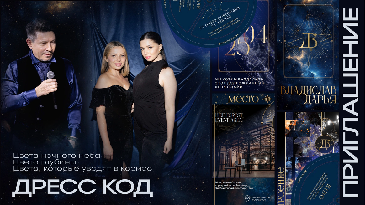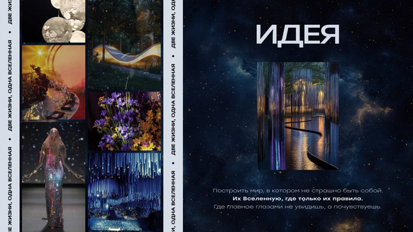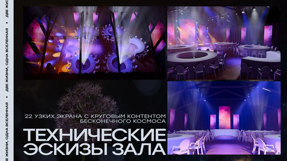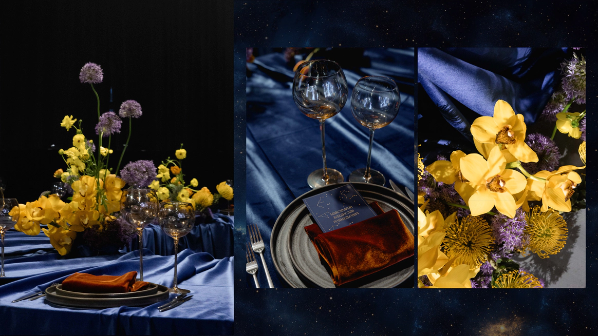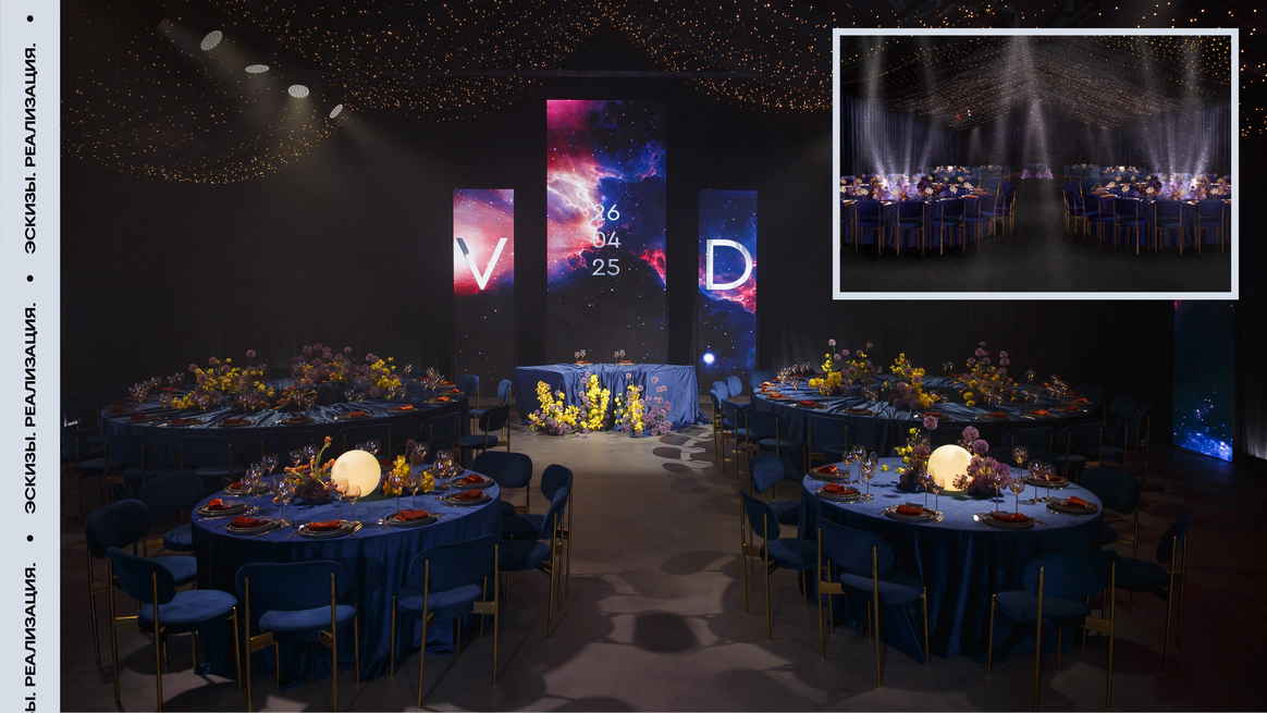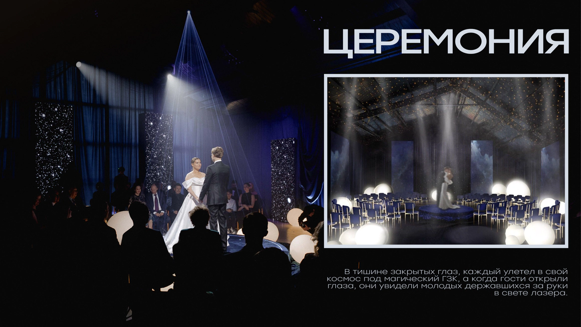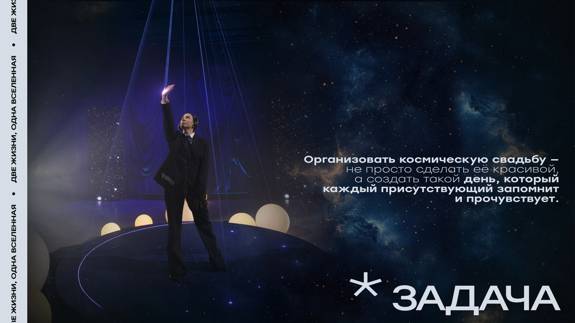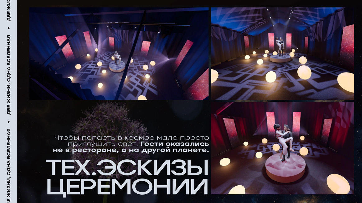 И мы придумали концепцию «Две души, одна Вселенная». Космическую историю, где гости становятся не зрителями, а участниками рождения новой семьи, новой галактики.