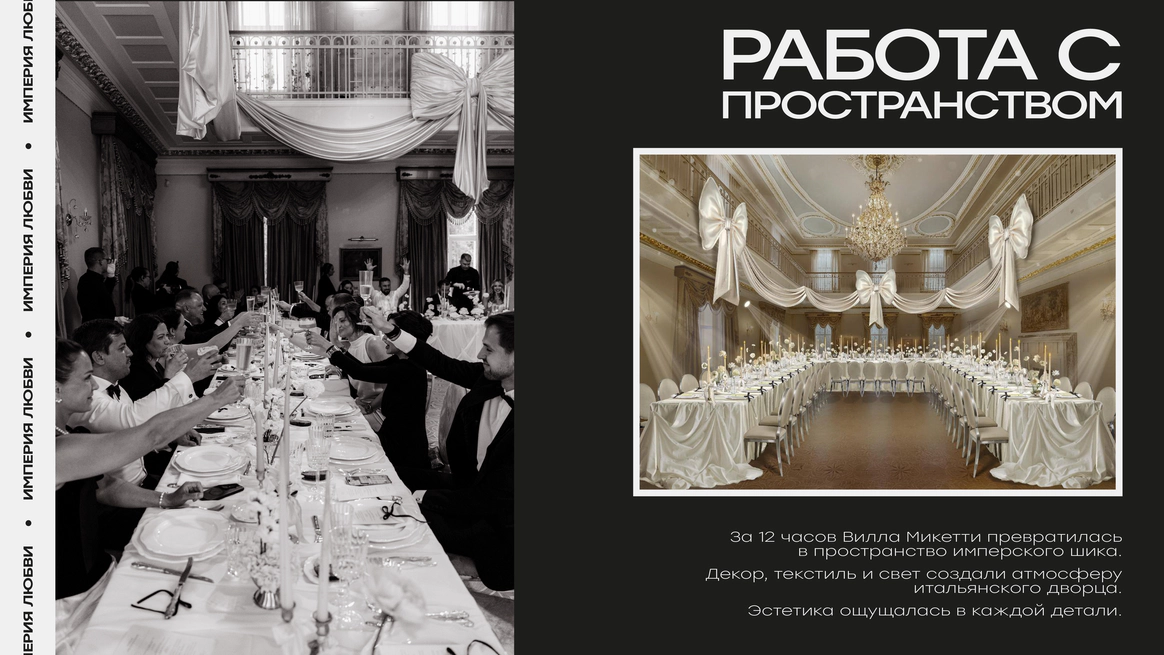 Мы организовывали не свадьбу. Мы строили империю двоих. И праздновали манифест их любви.