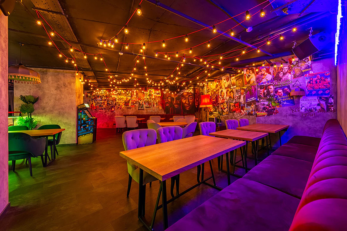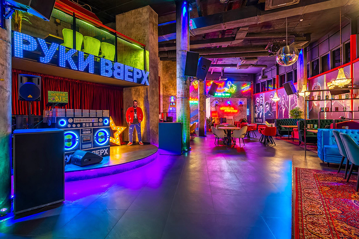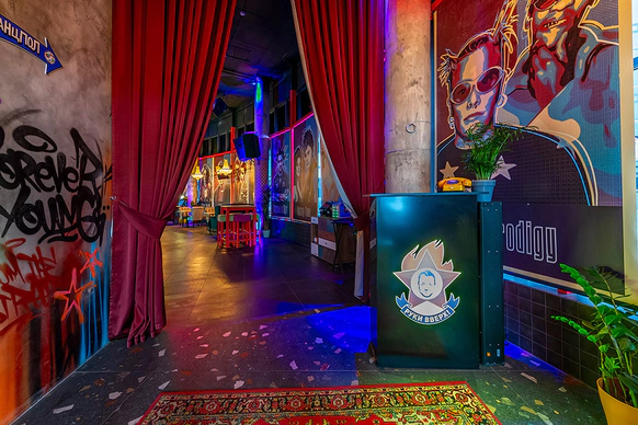 «Руки ВВерх! бар» — атмосферный бар Сергея Жукова. Здесь можно не только приятно провести время, но и окунуться в стиль 90-х. Интерьер ресторана яркий и продуманный до мелочей. Входную группу дизайнеры расписали граффити и тематическими рисунками. Двухуровневое пространство бара наполнили деталями из 90-х, сделали фотозоны с неоновыми подсветками, а длинную барную стойку украсили голографическим экраном. Празднуйте у нас! «Руки ВВерх! бар» — лучший выбор для проведения масштабных вечеринок и светских мероприятий, грандиозных презентаций и запусков нового продукта, больших корпоративных банкетов и других ярких событий. Мы можем закрыть ресторан специально для вас и принять до 400 персон. Помимо этого, возможна аренда отдельных залов: • Основной зал на первом этаже с высокими потолками, расписными колоннами и авторской мебелью подойдет для банкета до 80 гостей и фуршета до 200 гостей. Наличие сцены с диджейским пультом, профессиональное техническое и световое оборудования делают площадку уникальной. • Лаундж зона на антресольном этаже — это отдельное пространство с видом на основной зал и сцену. Позволяет провести банкеты до 50 персон и фуршеты до 85. • Уютный караоке — самое камерное место для небольших торжеств. Зал с приглушенным светом, комфортной обстановкой подходит для случаев, когда хочется спеть и уединиться. Вместительность караоке до 40 гостей для банкета. «Руки ВВерх! бар» — это высокое качество по доступной цене. В нашем меню вы найдете более 100 блюд по фиксированной стоимости в 290 рублей. В Мытищах вам больше никто такого не предложит. Здесь понравится любителям европейской, русской и японской кухни. Барная карта включает в себя как классические, так и авторские коктейли. Организация на высшем уровне Команда ресторана готова организовать любой праздник от небольшого торжества до масштабного мероприятия. У нас регулярно проходят концерты артистов, выступления звезд stand up и кавер-бендов. К нам приезжали: • Фактор 2, • Плазма, • Мираж, • Света, • И конечно же лидер группы РукиВВерх Сергей Жуков. Хотите спеть самостоятельно? Для вас отдельный зал караоке с современным высококачественным оборудованием. Что бы вы ни хотели отпраздновать – свадьбу, день рождения, корпоратив, – гарантируем, что сделаем все идеально с учетом всех ваших пожеланий. Звоните – расскажем все подробности!