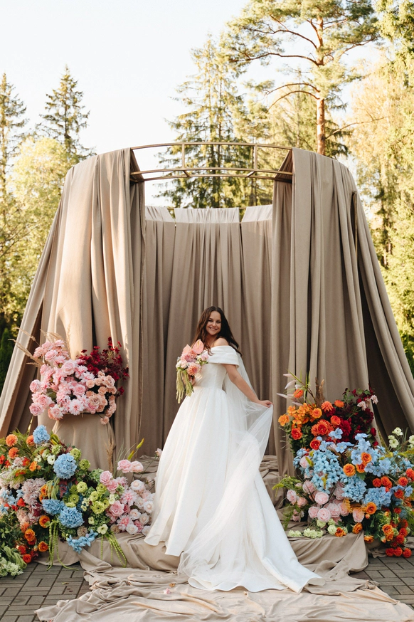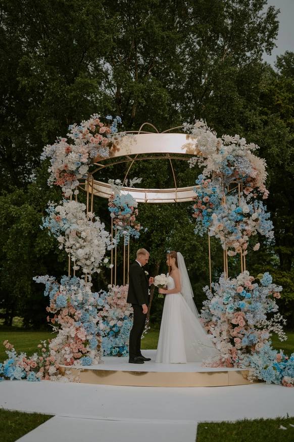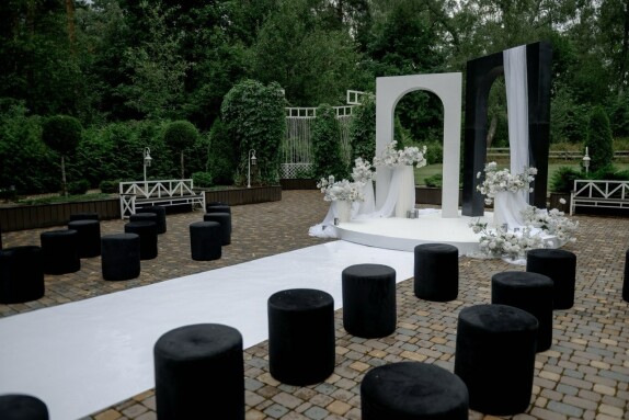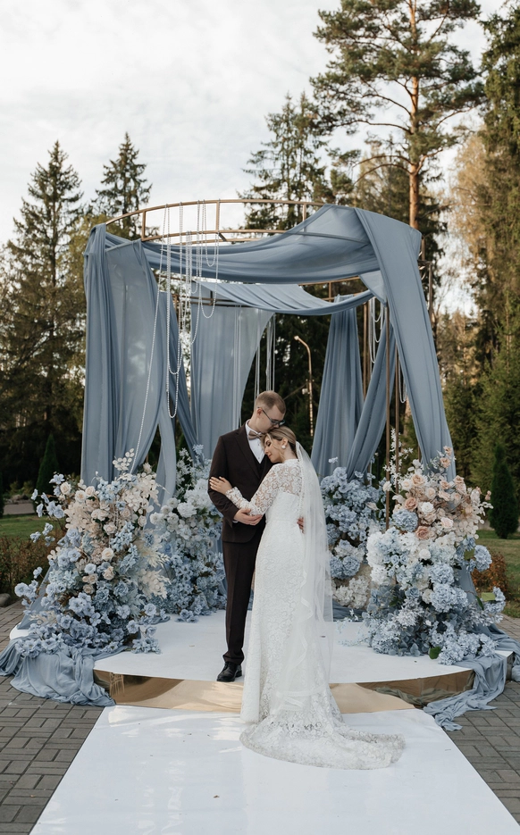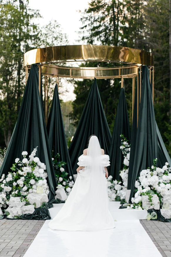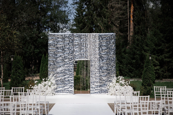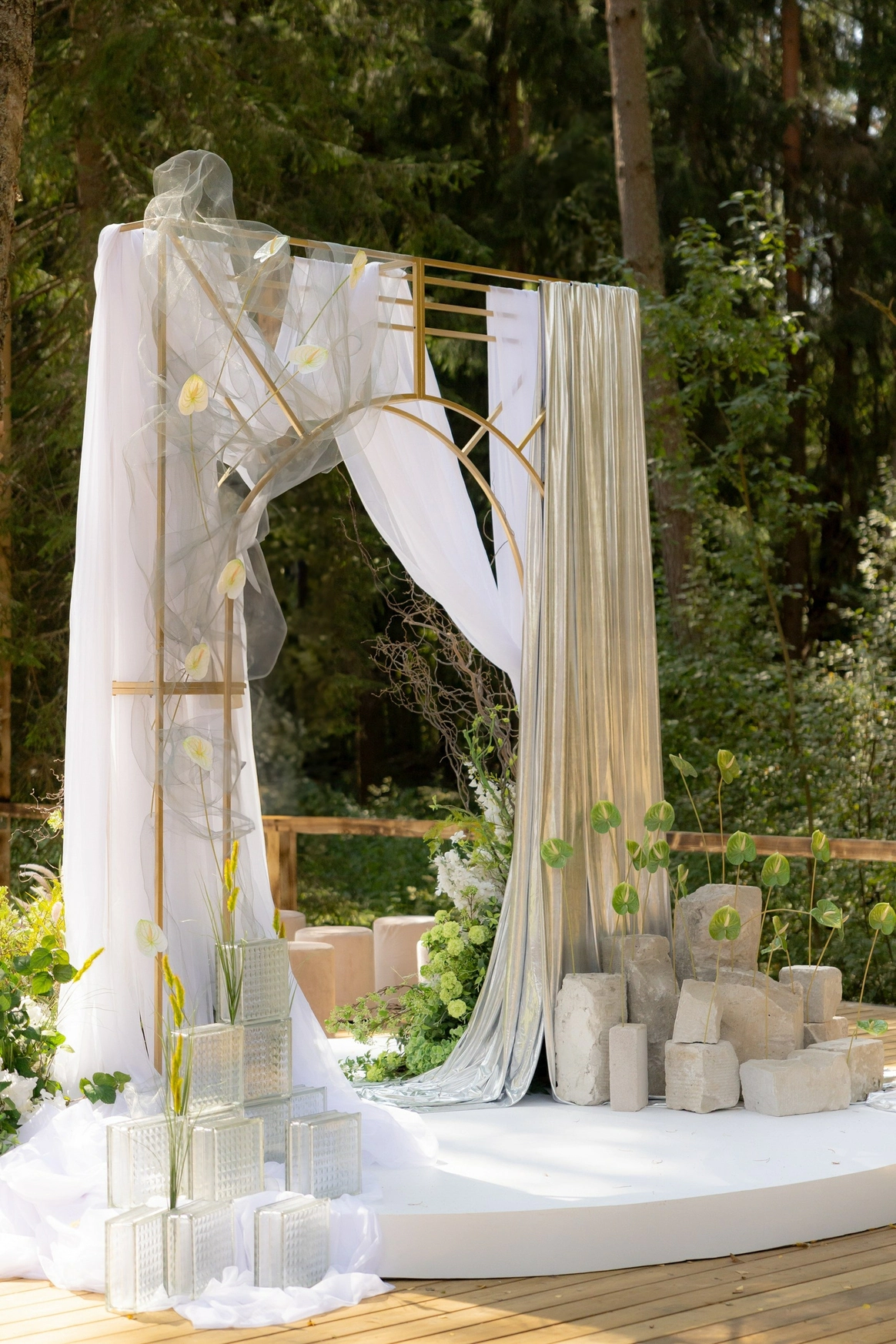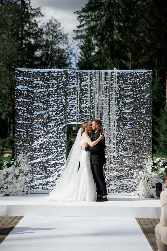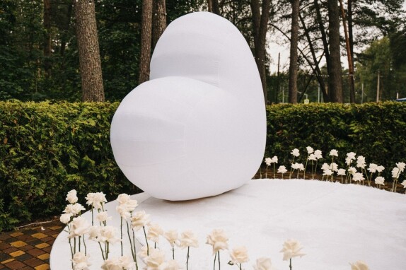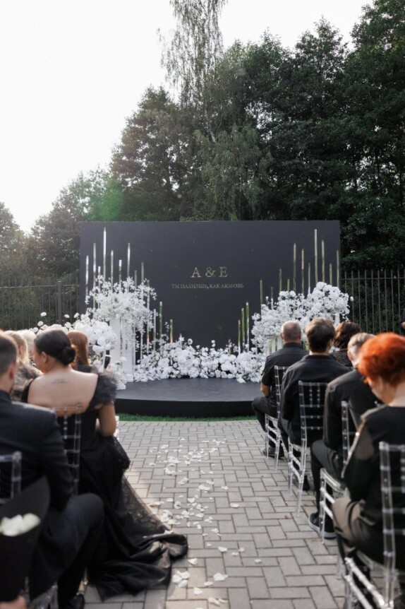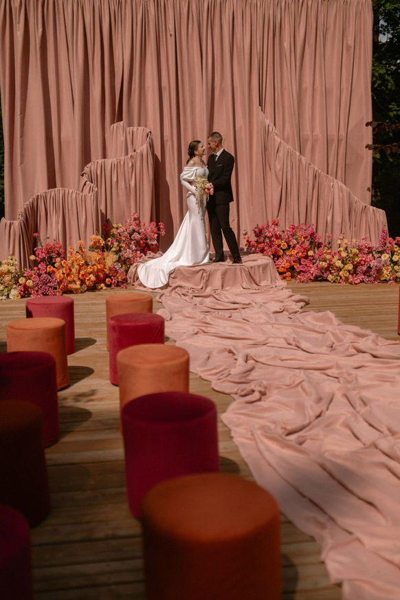 В точке церемонии два визуально разных пространства соединились в одно — как и они сами.