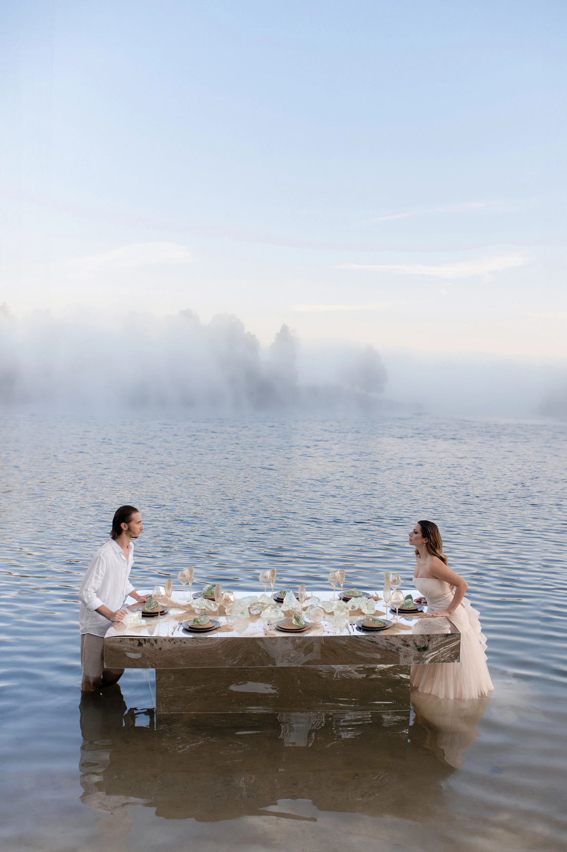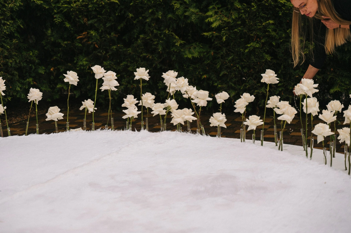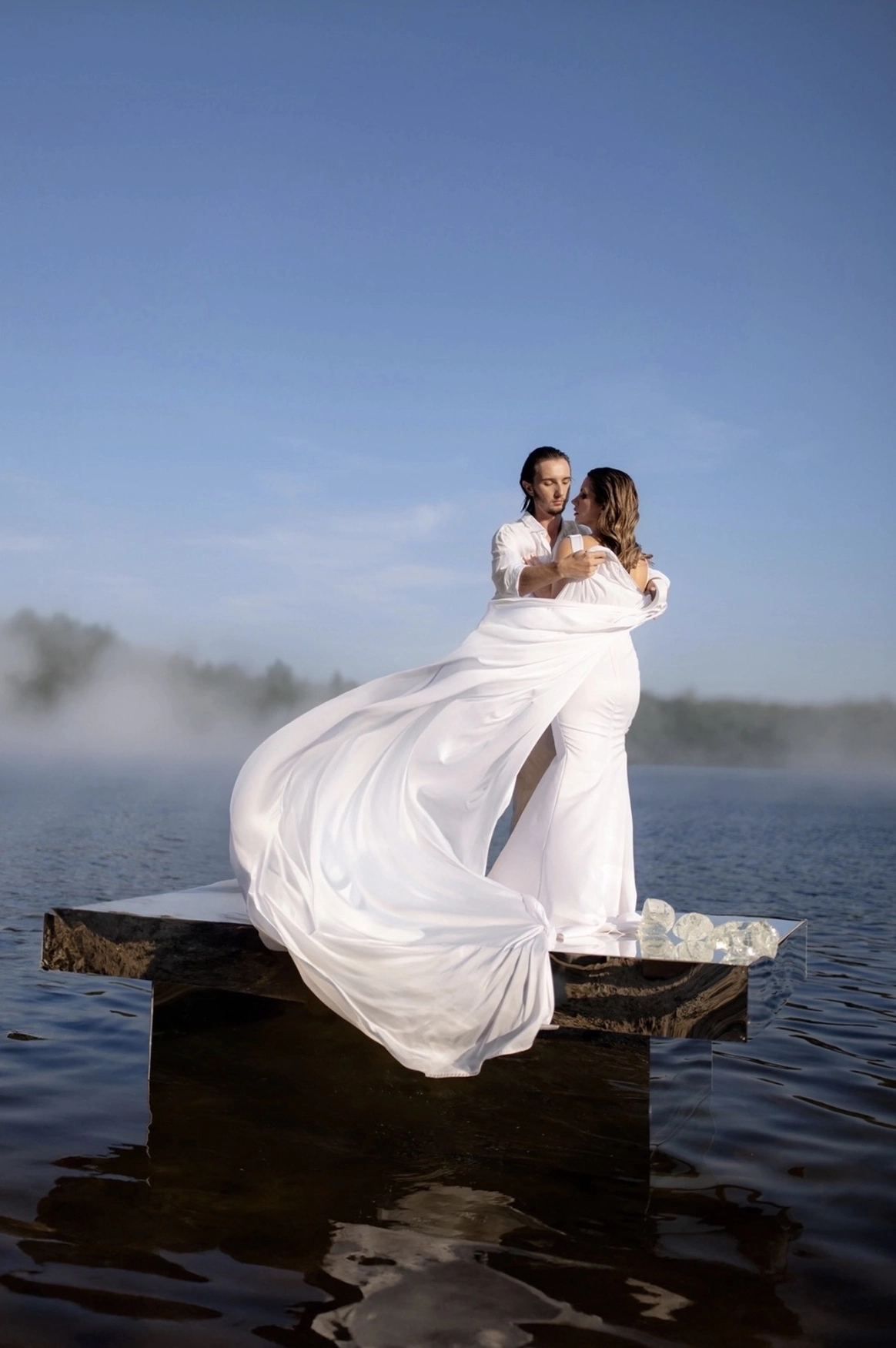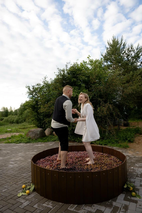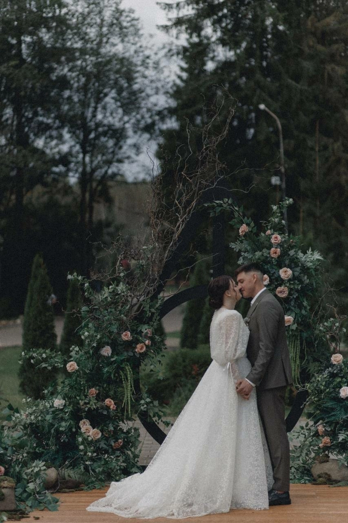 В точке церемонии два визуально разных пространства соединились в одно — как и они сами.
