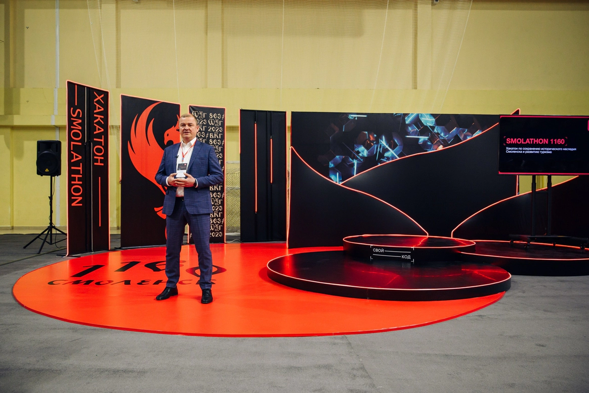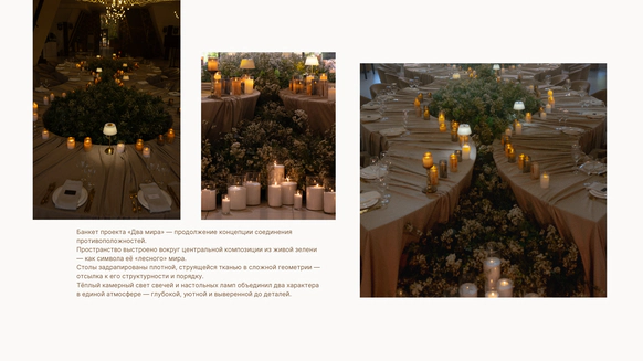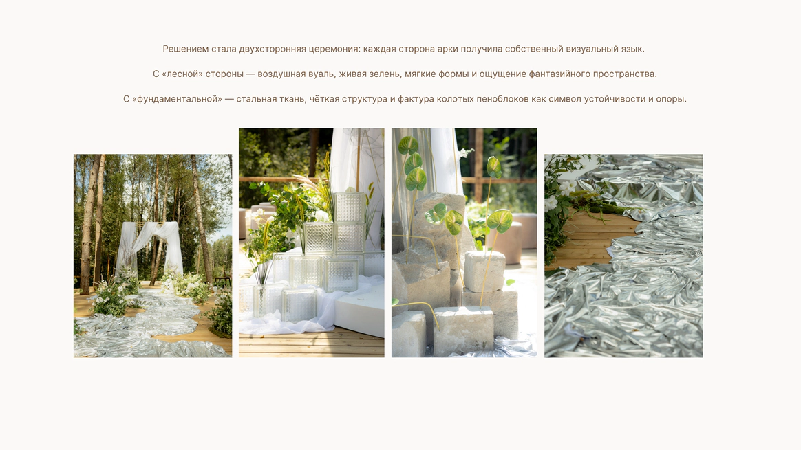 Решением стала двухсторонняя церемония: каждая сторона арки получила собственный визуальный язык.