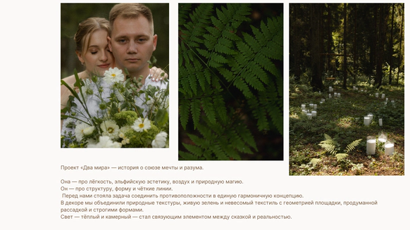 По образованию я врач-анестезиолог-реаниматолог и являюсь действующим врачом по сей день. Оттуда решительность и выносливость. В декоре нет права на ошибку и промедления, так же как и в спасении человека-время чётких и верных решений. Каждому событию соответствует уникальная история человека и его опыт. Я люблю копаться в ньюансах и передавать их через декор, рождая особенную атмосферу события. Я интегрирую не пространство в декор, а декор в пространство , работая с его фактурами, архитектурой и светом. Без лишнего пафоса, но с любовью к деталям и эмоциям. Вместе с супругом-действующим врачом-детским хирургом, руководим студией и создаём проекты со своей командой. Можно сказать, что это единственный случай во всём мире, когда действующие врачи создают большие и сложные проекты декора. У нас двое маленьких детей и последние сроки беременности выпадали на самые жаркие свадебные сезоны, но работа не останавливалась ни на день!
