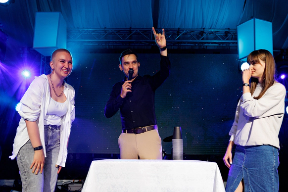 Здравствуйте! Я Вадим Садретдинов. Веду мероприятия уже 8 лет, гости говорят что я идеально сглаживаю углы, а я не спорю. Моя философия – созидание. Созидать и быть полезным вот что для меня важно, и это заряжает. Степенный, это слово однажды мне сказала бабушка невесты на свадьбе, я не помню контекст, просто решил поведать вам Создаю такую атмосферу, где ведущий не в центре внимание а где то рядом, наготове, как кот, вот даже сейчас вы читаете эти строки, а я справа ... ладно шучу...слева) Знаю Узбекский язык прикиньте)) (Это правда)