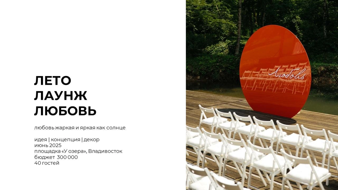 Привет! Меня зовут Саша Шеманская. Я декоратор и основатель студии креатива и дизайна. Мы не просто создаем декор — мы разрабатываем целостную концепцию мероприятия и тщательно продумываем каждую деталь, чтобы ваше событие было гармоничным и запоминающимся. Мы из Владивостока, но создаём проекты мирового уровня. Наш стиль — это современный декор с акцентом на лаконичность и утонченность. Наша сила — умение сочетать креативность с практичностью на всех этапах работы. Опыт более 15 лет в руководящей должности в отделе маркетинга позволил мне выработать системный подход к реализации масштабных проектов. Для меня ответственность и внимание к деталям — ключевые ценности, которые обеспечивают высокий уровень сервиса. Опыт преподавания в Дальневосточном Университете в области креативного мышления я использую, чтобы ваши мероприятия были не только стильными, но и глубокими по смыслу и восприятию.