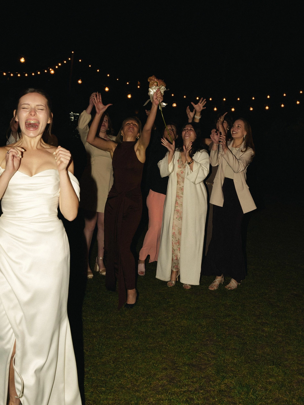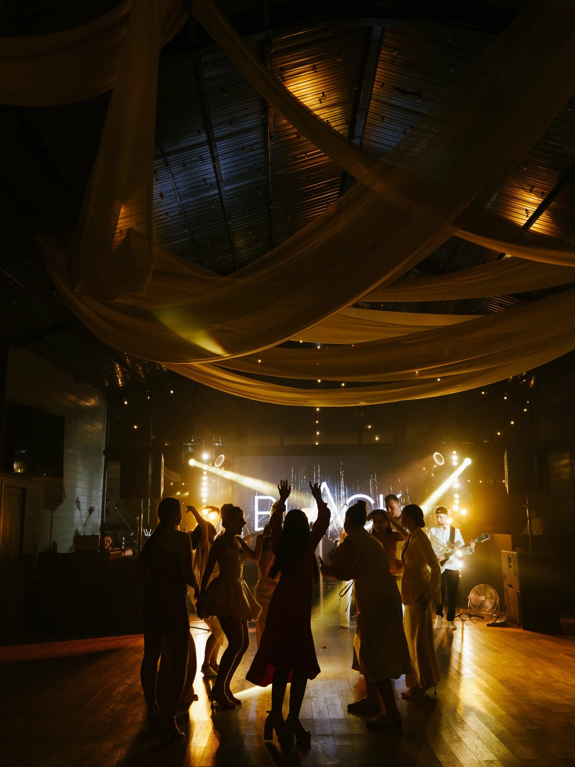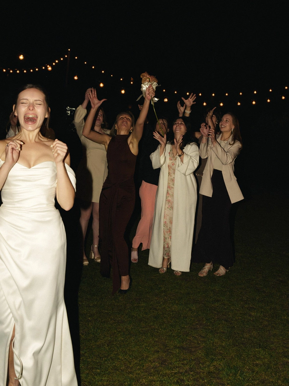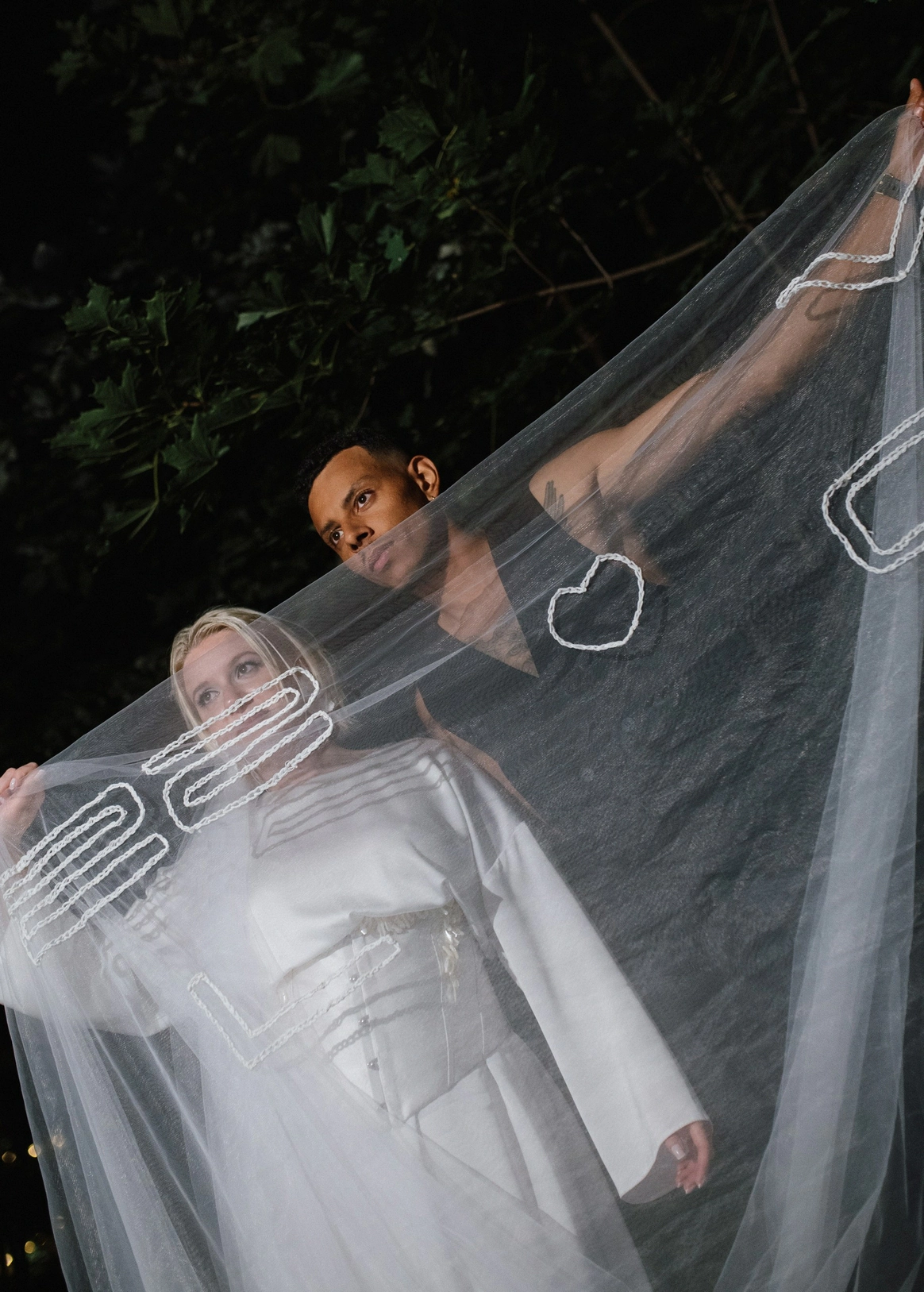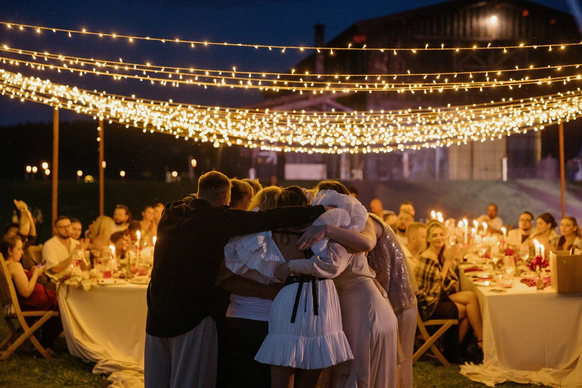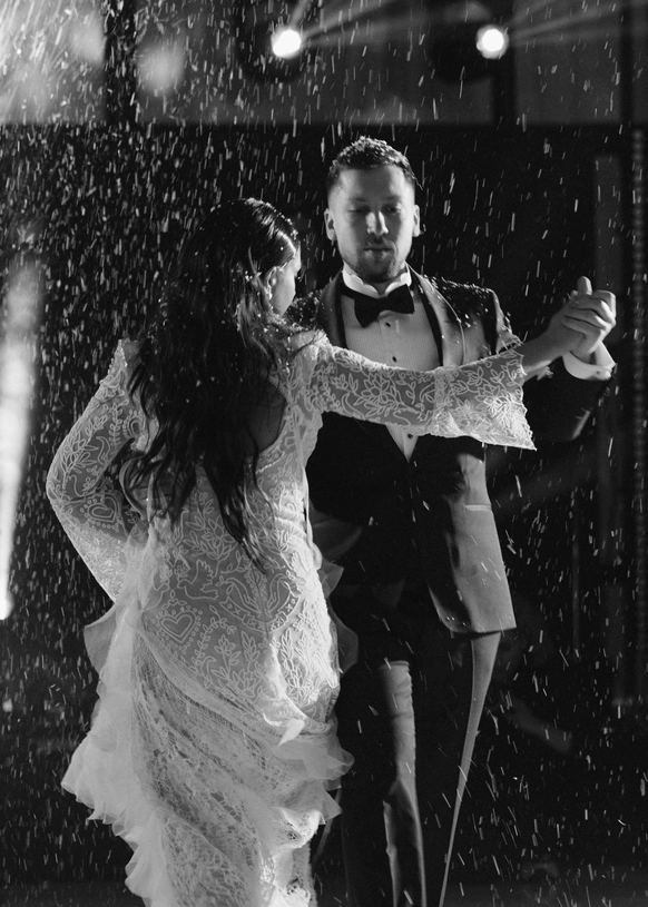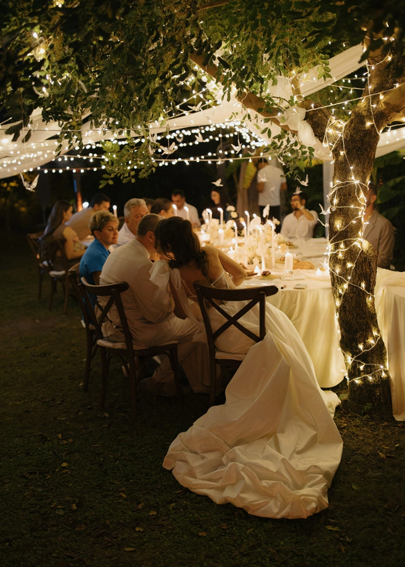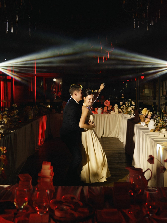 По формату это должен был быть свадебный ужин под открытым небом, который плавно перетекает в яркую вечеринку с легкими рейв-нотами. Такой сценарий идеально отражал характер пары и гостей — их темперамент и вкус к жизни.