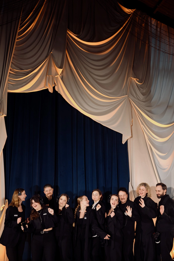 Вся сценарная часть была завязана на световых сценах, поэтому все 4 стены мы задрапировали тканью, исключив попадание дневного света.