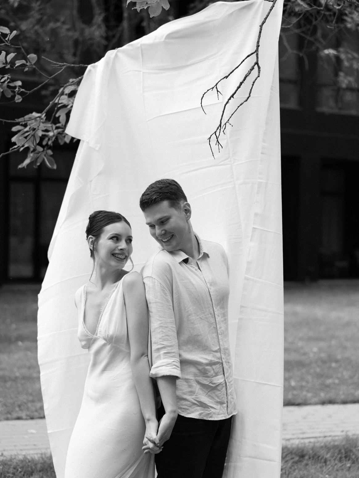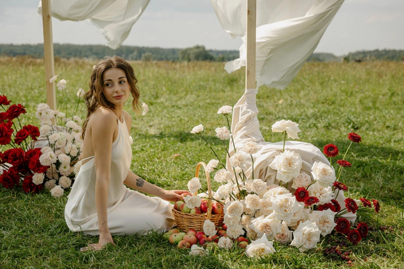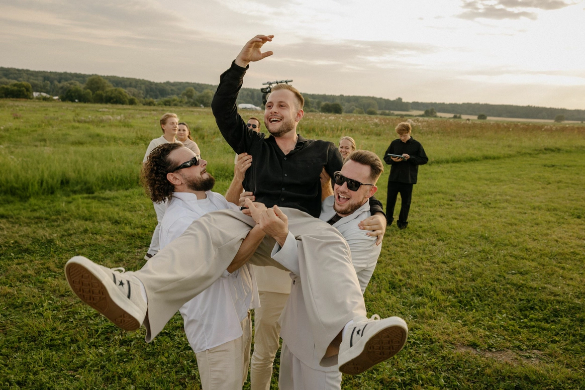 История любви нашей пары началась с судьбоносной встречи на местной дискотеке в небольшом городе Сухиничи Калужской области — родном городе невесты. Никита и Карина всегда предпочитали тихую и спокойную жизнь за городом вдали от городской суеты. Для них было важно отпраздновать свадьбу на природе и воссоздать атмосферу их привычному образу жизни с деревенскими мотивами, но при этом сохранив элегантность и торжественность этого события.
