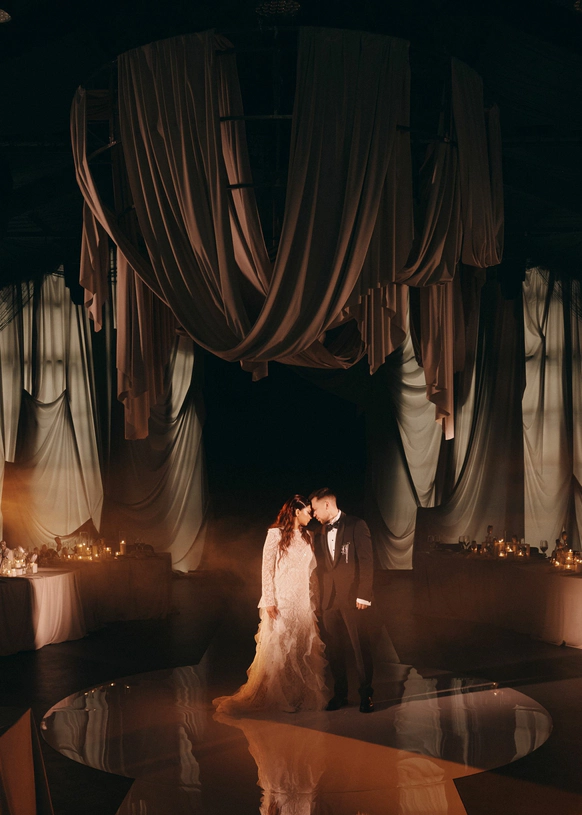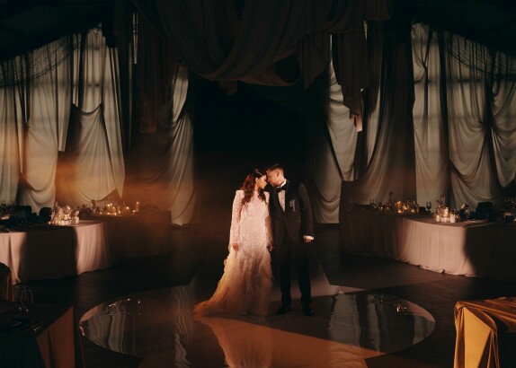 Так две противоположные стихии стали основой концепции свадьбы. Их взаимодействие мы тонко раскрыли через декор, световые решения, спецэффекты и перфомансы.