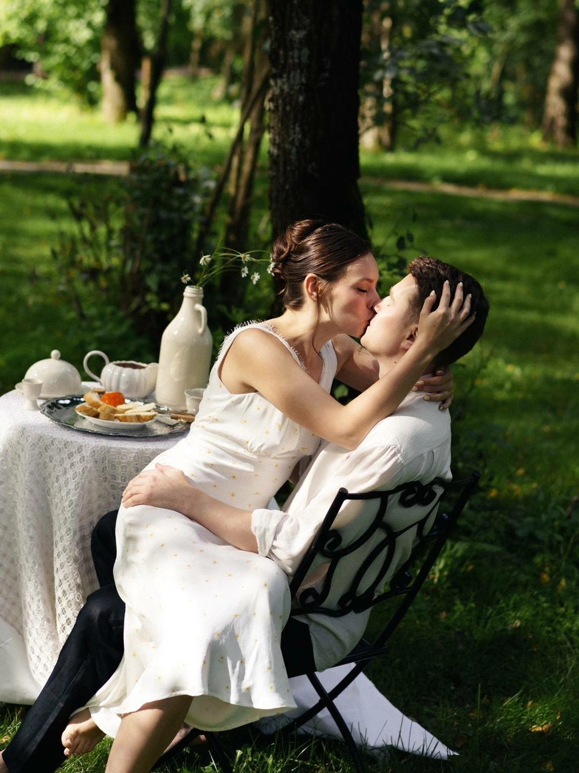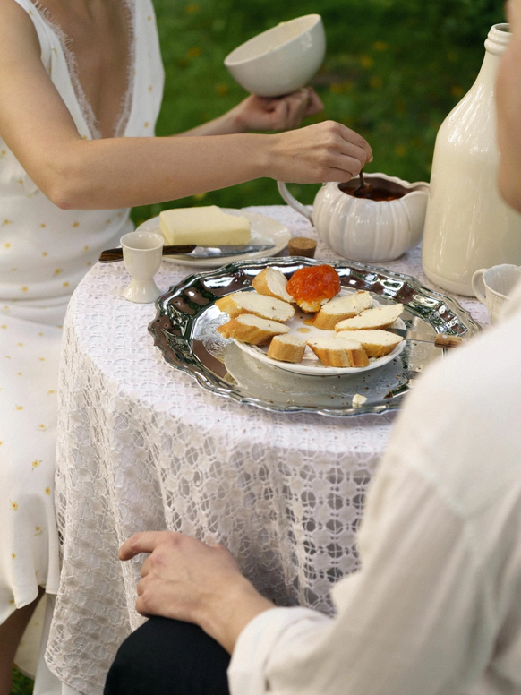 Идея утренней съемки заключалась в воссоздании их привычного завтрака на природе в родительском доме.