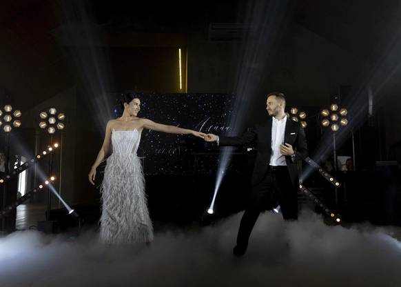 Открытие. Перфоманс захода пары в зал, сопровождающийся холодным и теплым лучами с закадровым голосом и рассказом о соединении двух стихий.