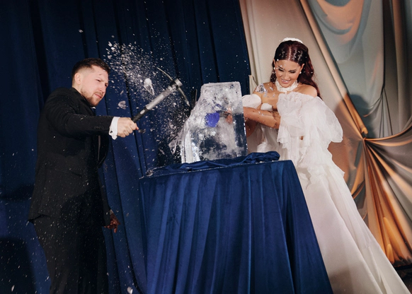 Церемония. Пара разбивала глыбу льда, в которой находились кольца.
