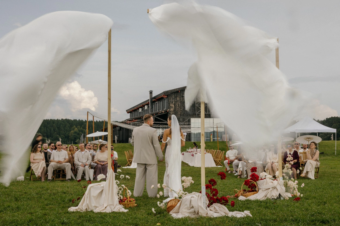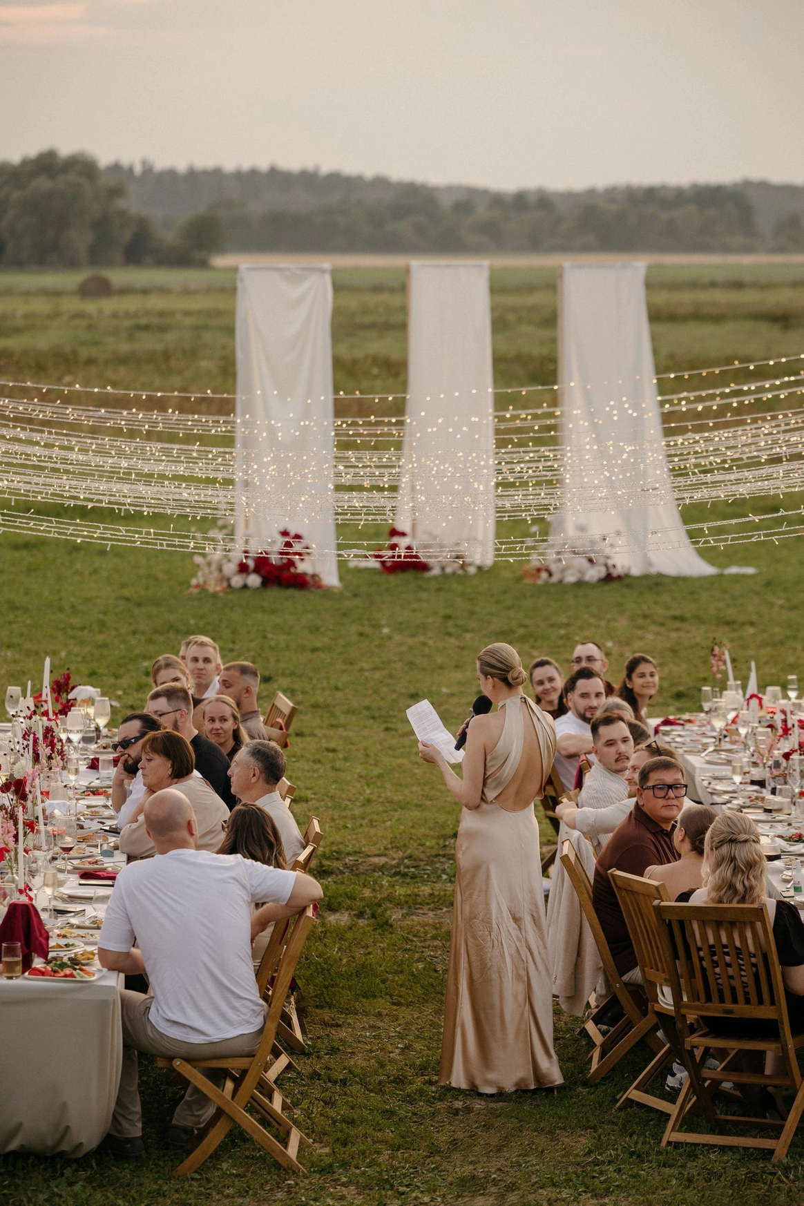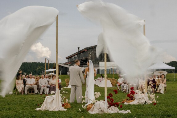 Тарас и Юлия обратились с запросом о свадьбе под открытым небом на природе с возможностью комфортного размещения для всех 50 гостей. Им хотелось, чтобы стилистика свадьбы была вдохновлена Францией — страной, чья культура, эстетика и атмосфера им близки.