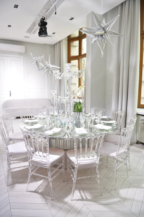 Shakirova Space — пожалуй, самая продуманная и разноплановая локация в центре Москвы. В Shakirova Space все максимально удобно: два просторных зала, фойе, отдельное место для приветственного коктейля. Семейные праздники и уютные свадьбы, проведенные здесь, показали, что такая планировка локации очень удобна и для организаторов, и для гостей. Арендовать пространство можно как полностью, так и отдельные залы. Особенно актуально это при организации фотосессий. Можно смело выбрать только один зал и провести в нем предсвадебную съемку или сборы невесты. Для фуршета или банкетного ужина в Shakirova Space предусмотрен стационарный бар и кухня. Это делает пространство подходящим для любого формата мероприятий. Можно не переживать: кейтеринг будет чувствовать себя не менее комфортно, чем гости. Основатель Shakirova Space — трендсеттер Юлия Шакирова — предусмотрела самые важные нюансы, создав роскошное и функциональное место для мероприятий любого формата. Лаконичный интерьер и грамотное технические оснащение дают возможность легко преображать пространство Shakirova Space, воплощая даже сложные дизайнерские решения. Стилизовать предсвадебную съемку или продумывать оформление для камерной свадьбы в таких условиях становится значительно приятнее и спокойнее. Тем более, что светлые тона, зеркала и воздушность пространства как нельзя лучше сочетаются с чистым и нежным образом невесты. Прекрасное подтверждение этому — обложка Wedding Magazine с Региной Тодоренко, съемки которой проходили именно в Shakirova Space.