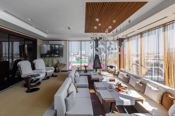 Шератонплаза Уфа: синергия мировых стандартов и национального наследия. Шератонплаза Уфа — флагман гостеприимства Башкортостана, открытый в 2015 году к международным саммитам ШОС и БРИКС. Расположенный в самом сердце Уфы, отель является главной точкой притяжения для делового сообщества и путешественников, ценящих безупречный сервис. Дизайн с душой региона 154 уникальных номера, спроектированных шведским дизайнером Кристианом Лундвалом, сочетают в себе эстетику современного бизнес-отеля и аутентичный колорит. Интерьер с этническими мотивами и работами башкирских художников превращает отель в платформу для культурной коммуникации и знакомства с традициями республики. Гастрономическая экосистема Отель предлагает исключительный опыт в четырех концептуальных локациях: Novum Taganok с открытой кухней, легендарный ресторан Rossinsky в старинной усадьбе XIX века, панорамный Sky Lounge и Link Cafe 24/7. Мы — единственная площадка в регионе, реализующая гастрономические проекты: от традиционной «Серенады весны» и иммерсивных шоу с симфоническим оркестром до эксклюзивных вечеров с участием звезд Мишлен. Обладатель премий как лучший MICE-отель страны, Шератонплаза Уфа предлагает 7 высокотехнологичных залов для проведения мероприятий. Для перезагрузки гостей созданы клиника B-lab, оснащенный SPA-центр с хаммамом, джакузи и фитнес-залом. Особая гордость отеля — уникальная панорамная баня на крыше, открывающая захватывающий вид на исторический центр Уфы в атмосфере абсолютного уединения. Шератонплаза Уфа — это пространство, где мировые стандарты гостеприимства и богатые традиции Башкортостана создают лучшую среду для жизни и бизнеса.
