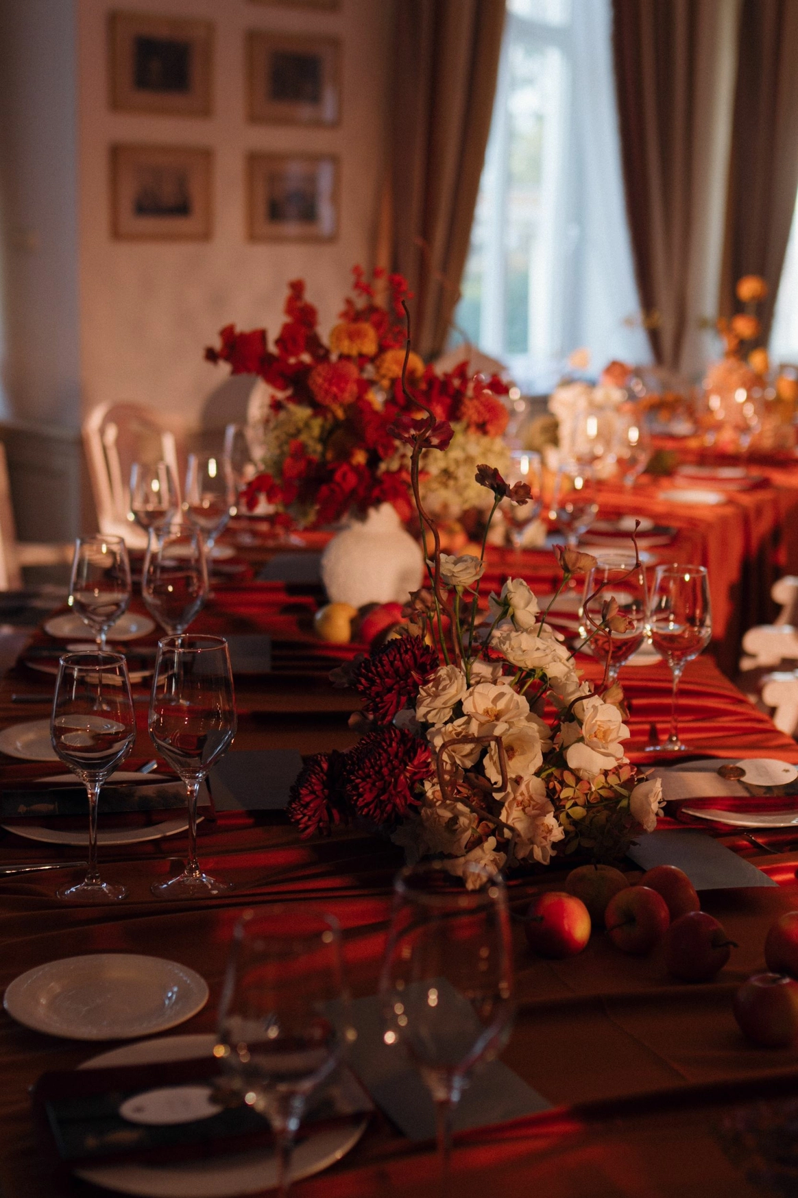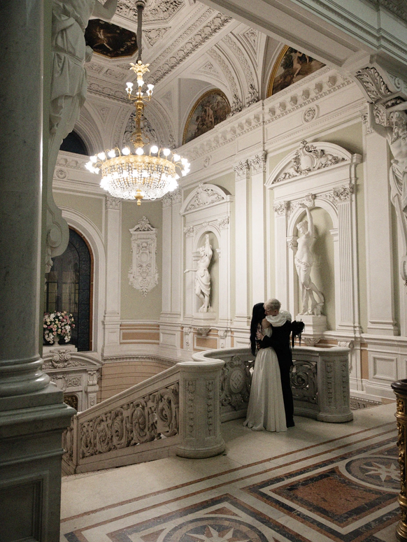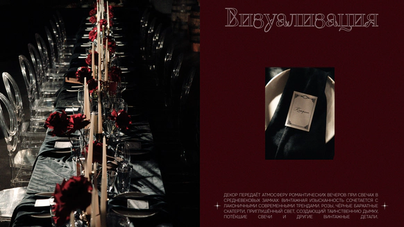 Во время подготовки невеста Маша забеременела. Перед нами стояла задача остаться в концепте, но подстроиться под обстоятельства. Так мы полностью заменили образы невесты, отшили новые платья, ушли от концепта тусовки в замке в более спокойный светский вечер (спойлер: тусовка все равно была).