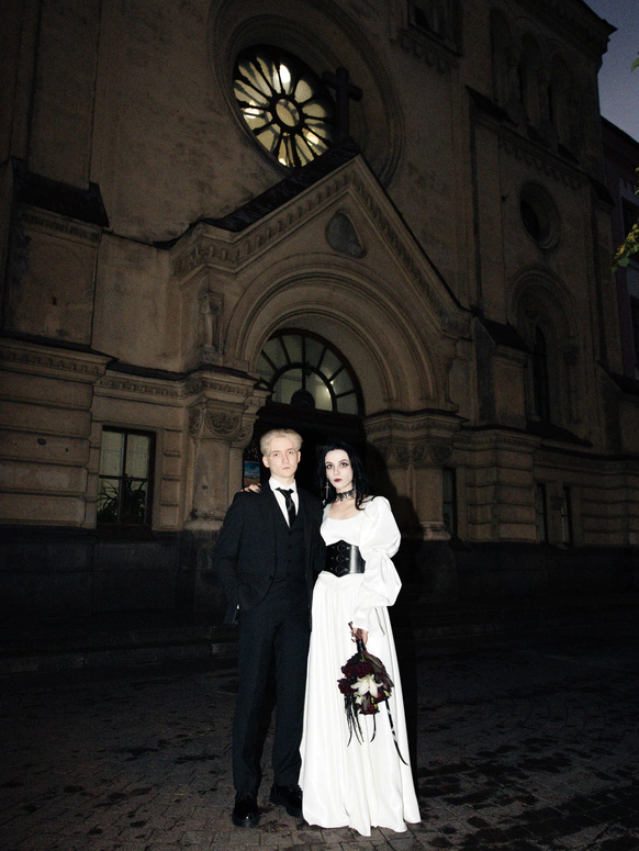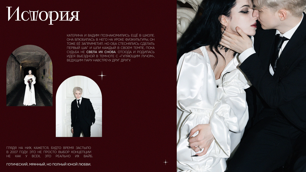Глядя на них, кажется, будто время застыло в 2007 году. Это не просто выбор концепции не как у всех, это реально их вайб. Готический, мрачный, но полный юной любви.