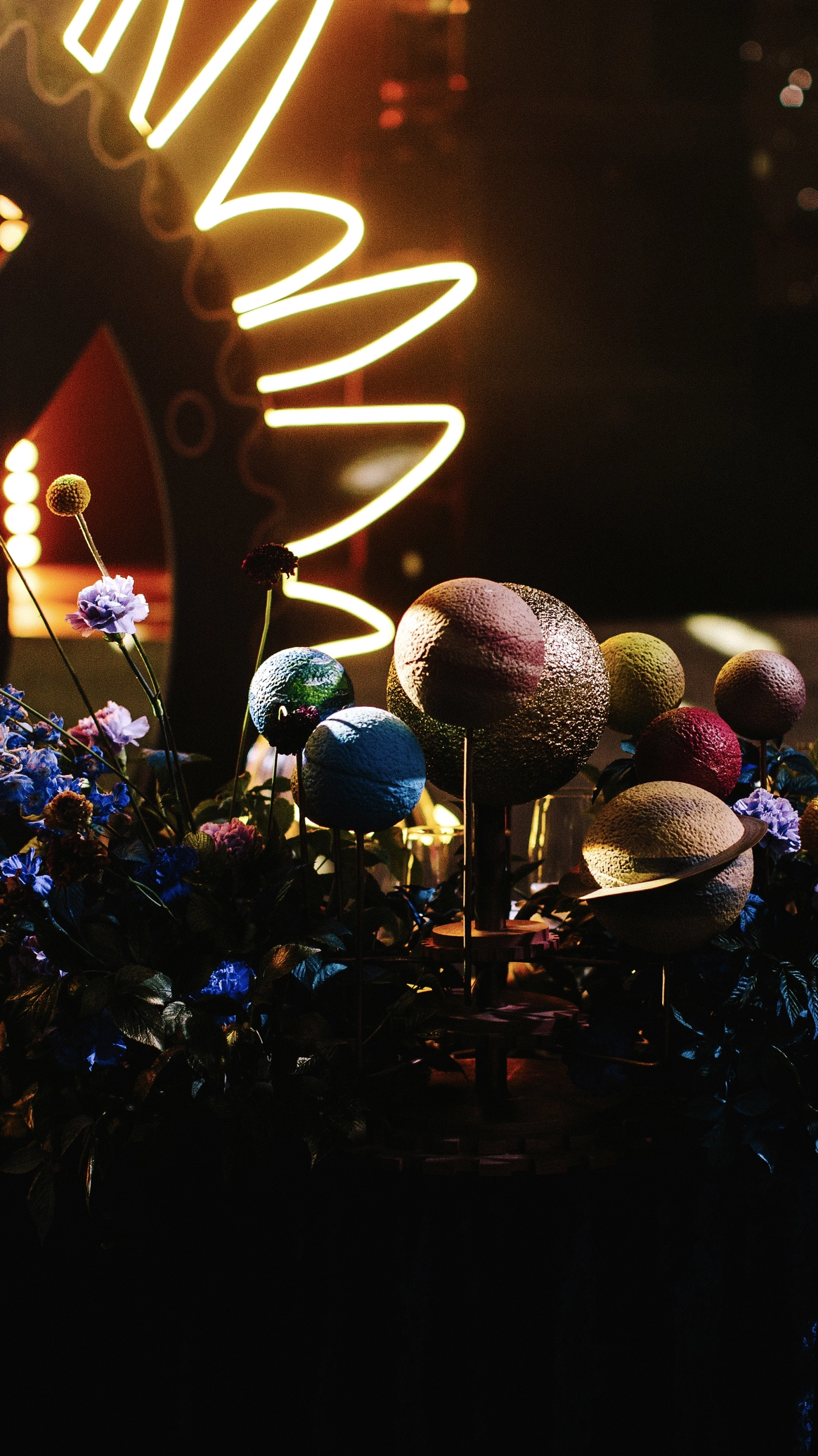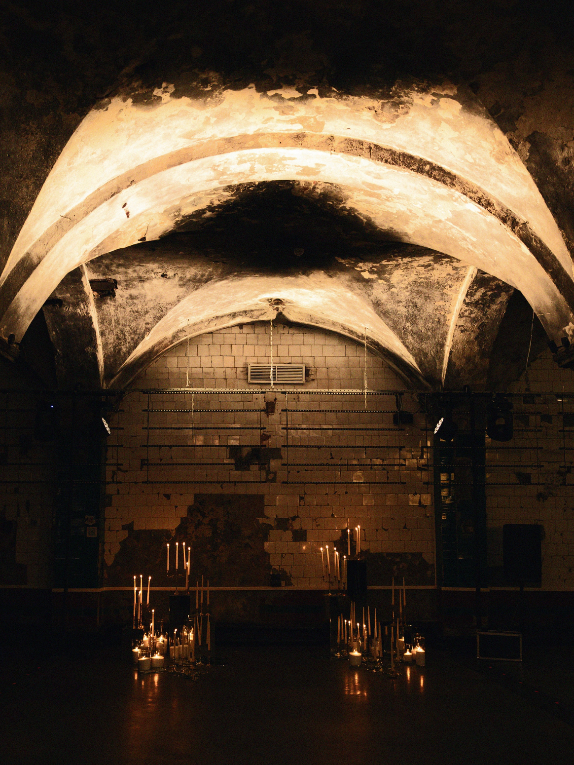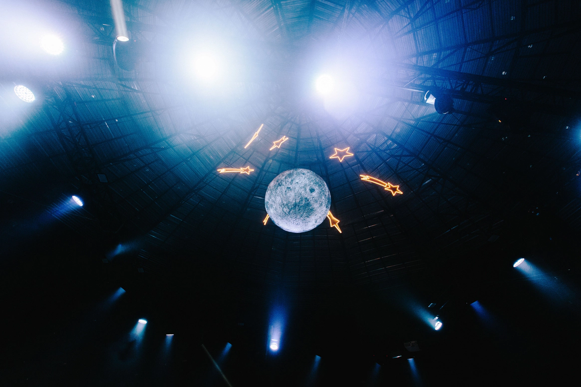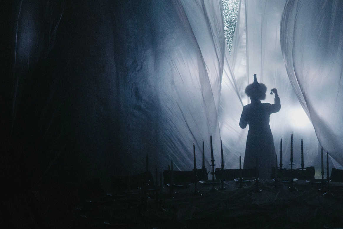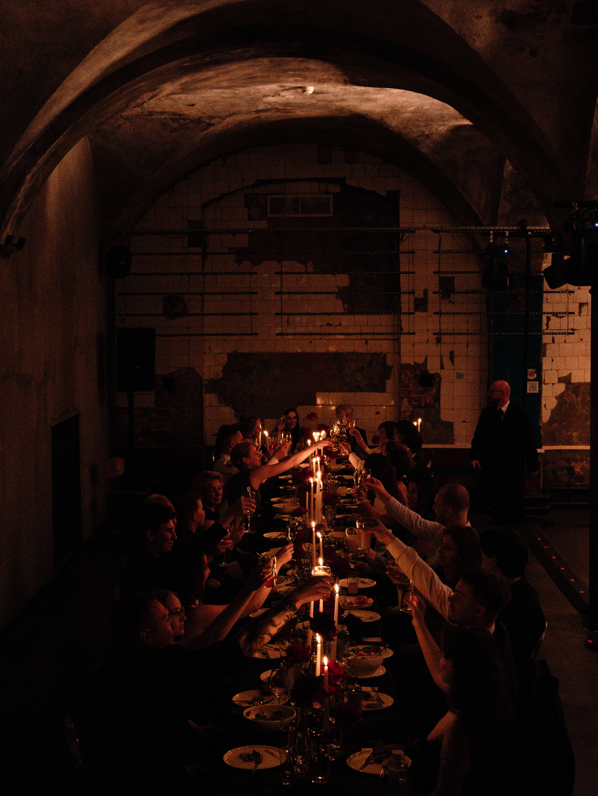 Моментом погружения гостей в тематику была выездная церемония в темноте с необычной сценографией выходов жениха и невесты. Поддерживали всю эту историю специально подобранным плейлистом.