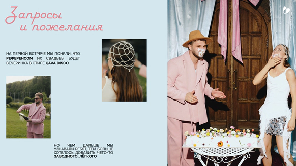 На первой встрече после кофейни мы с Ариной и Андреем пошли в бар и там поняли, что референсом их свадьбы станут вечеринки от всеми известных ÇAVA DISCO.