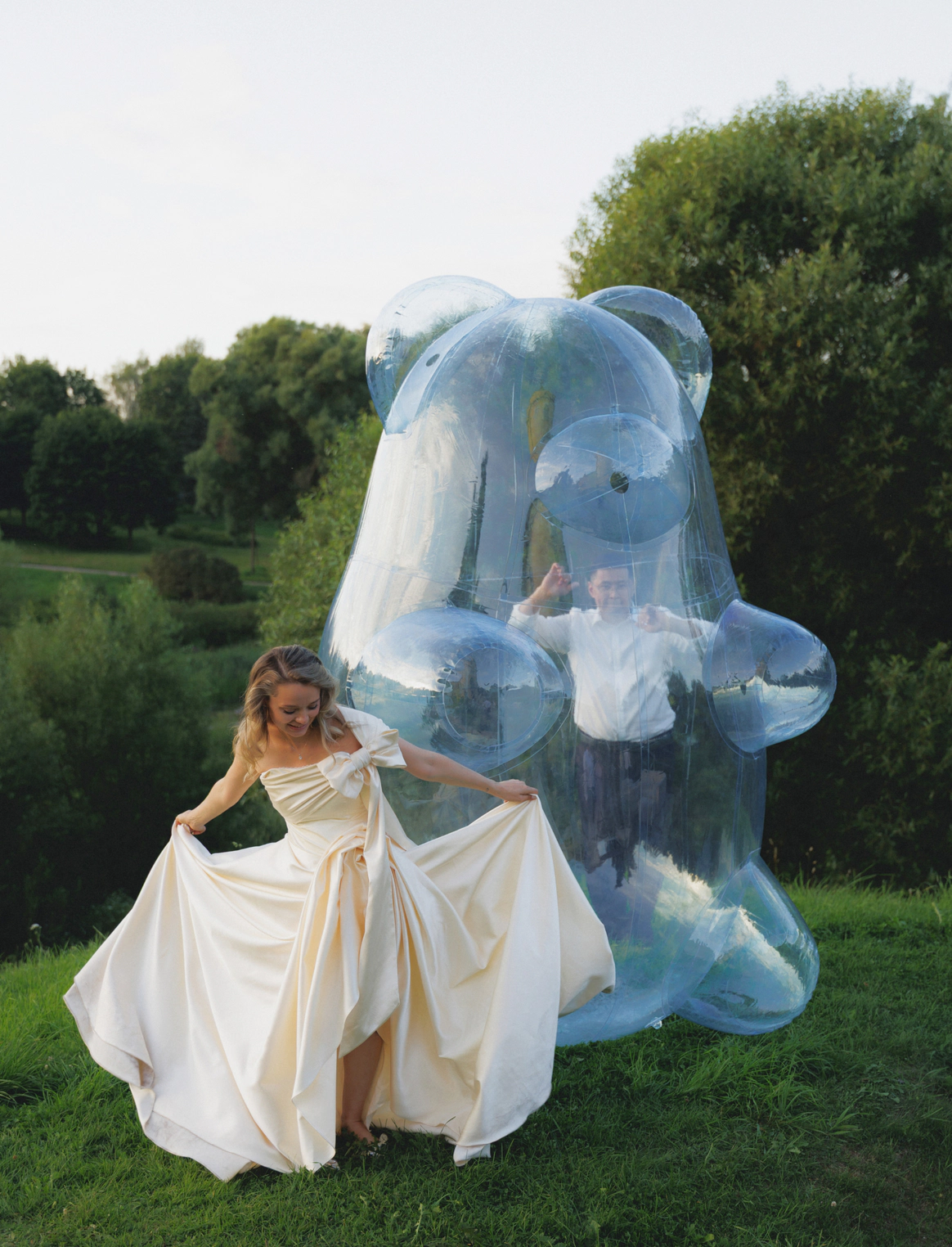 На форс-мажорном: медведей изготавливали с нуля, заказывали их через Китай. Первый мастер отвалился, пришлось экстренно искать нового. Поседели, нашли, надули