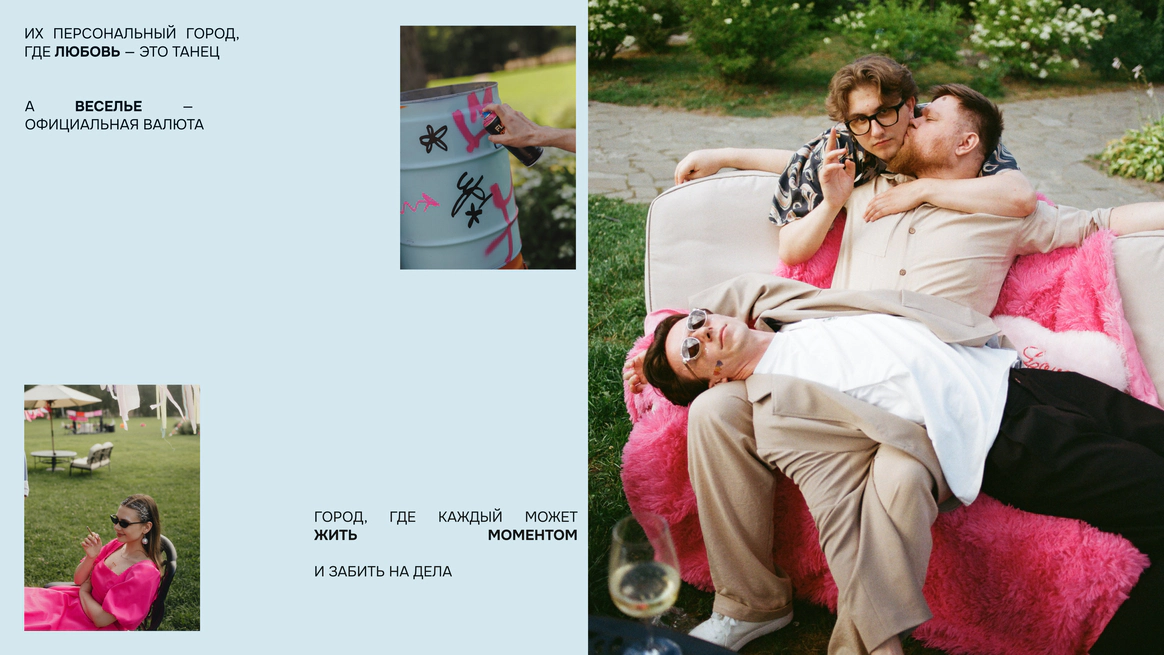 Бывшие хипстеры, выходцы из общепитовской движухи и барных тусовок. Главненькая Маша имеет режиссёрское образование и верит в красоту бесшабашности. Освоили классические современные свадьбы по всем правилам, но добавляем к ним самобытность, ведь у каждого есть свой изюм. А неформальные ивенты — это вообще наша фишка! На одной волне с зумерами, но понимаем и боли миллениалов. Наши заказчики гедонисты, айтишники, лидеры креативных индустрий. Мы — калейдоскоп ваших историй