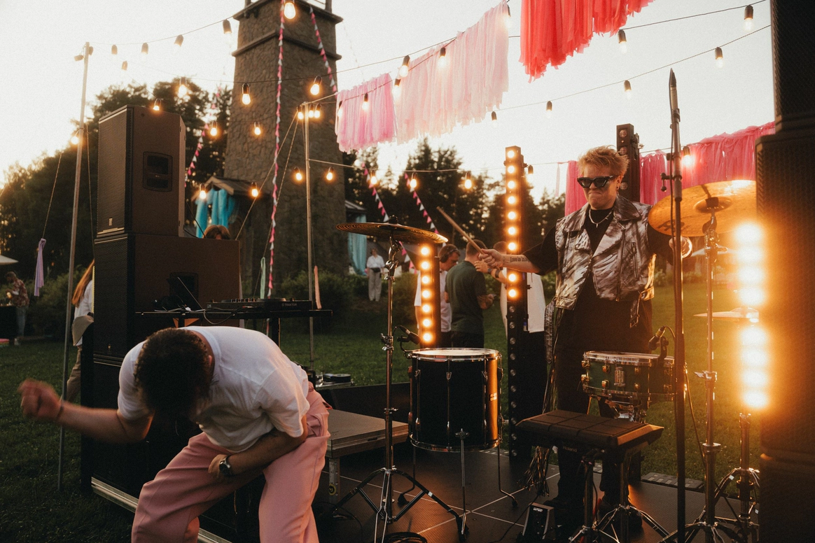 На газоне помимо интерактивных зон установили настоящую сцену, где играли кавер-группа и диджеи. Была даже Марианна Ямпольская, резидент вечеринок ÇAVA DISCO.