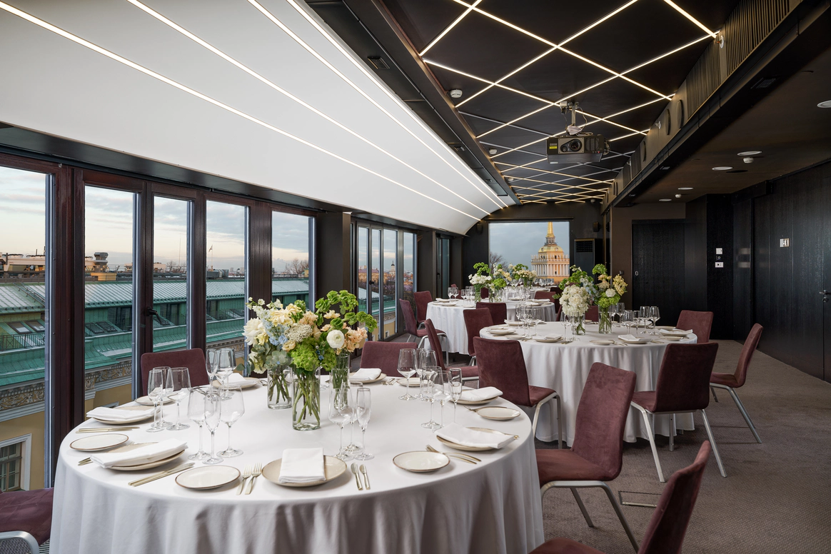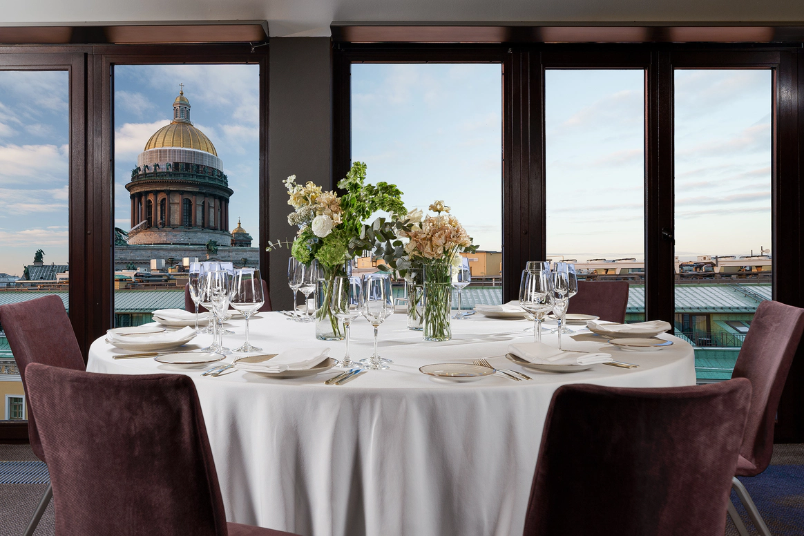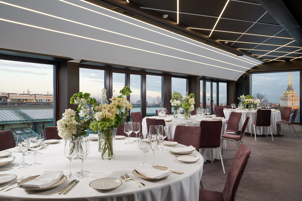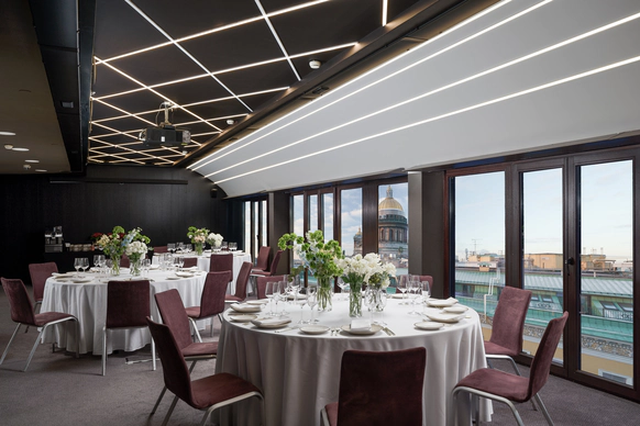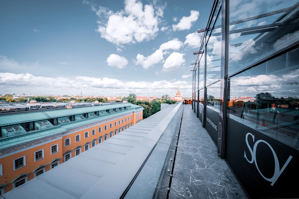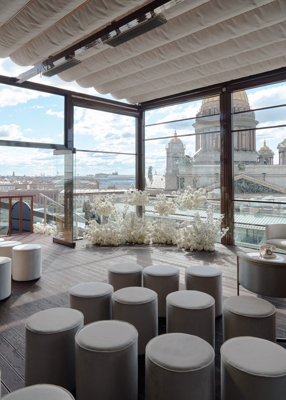 SO/ St. Petersburg - эксклюзивный дизайнерский отель, расположенный в самом сердце Санкт-Петербурга у Исаакиевского собора. Это место, где каждый уголок наполнен искусством и роскошью, благодаря таланту знаменитого итальянского дизайнера Антонио Читтерио. Вдохновившись работами Карла Фаберже, Читтерио создал интерьеры, которые можно сравнить с изысканными шкатулками с драгоценностями. Этим обусловлено появление в декоре узора в виде ромбов, а также светильников из 24-каратного золота Ortenzia Very Very Gold от Terzani и инсталляции из замороженного акрила от художника и скульптора Джакопо Фоджини. SO/ St. Petersburg располагает 137 номерами и люксами, каждый из которых является произведением искусства: от уютных SO Cozy, до мансардных SO Lofty и апартаментов SO VVIP с камином, двухместнои ваннои с видом на Исаакиевский собор. Во всех номерах каждая деталь тщательно продумана для комфорта и удовольствия гостей. Наслаждитесь эксклюзивными удобствами, такими как набор косметических принадлежностей от итальянского бренда профессиональной косметики из Тосканы - Comfort Zone, комплиментарный минибар, индивидуальное sleep menu, по которому каждый гость может выбрать себе подушку по вкусу, а также заказать маску для сна или попросить подготовить расслабляющую ванну. На крыше отеля расположен расторан HI-SO Terrace, который с наступлением весны становится идеальным местом для созерцания белых ночей и бесконечного заката на фоне величественного купола Исаакиевского Собора и Адмиралтейства. Каждое блюдо в HI-SO Terrace тщательно подобрано, чтобы отразить лучшее из сезонных ингредиентов. Кулинарные шедевры, созданные талантливыми поварами, предлагают не только изысканный вкус, но и визуальное наслаждение. Сочетание высококлассного сервиса и авторской кухни создает атмосферу, которая делает каждое событие особенным – будь то романтический ужин при свечах или эксклюзивная вечеринка в кругу близких друзей. Авторские коктейли, поданные под открытым небом, лишь дополняют этот незабываемый опыт. Наша инфраструктура включает два ключевых пространства — ресторан HI-SO Terrace и банкетный зал SO Lounge, которые идеально подходят для создания незабываемых моментов в вашем важном дне. Ресторан HI-SO Terrace — это настоящая жемчужина отеля, расположенная на крыше с потрясающими видами на Исаакиевский собор и Адмиралтейство. Площадь террасы составляет 150 квадратных метров, что позволяет организовать как камерную церемонию для близких, так и масштабное торжество для большого количества гостей. Гибкость площадки дает возможность адаптировать пространство под любой стиль оформления — от классической элегантности до современных концепций. При приватизации ресторана HI-SO Terrace можно организовать изысканный банкет на 80 гостей или выездную церемонию для 40 человек. Автоматическое остекление и мобильная тент-крыша обеспечивают легкость в управлении пространством, позволяя наслаждаться каждым моментом мероприятия независимо от погодных условий. Команда профессионалов готова удовлетворить любые пожелания молодоженов, начиная от изысканного меню, созданного шеф-поваром ресторана специально для вашего торжества, до индивидуального подхода к каждому гостю. Банкетный зал SO Lounge предлагает современное и стильное пространство площадью 100 кв.м., что позволяет комфортно разместить до 60 человек при банкетной р