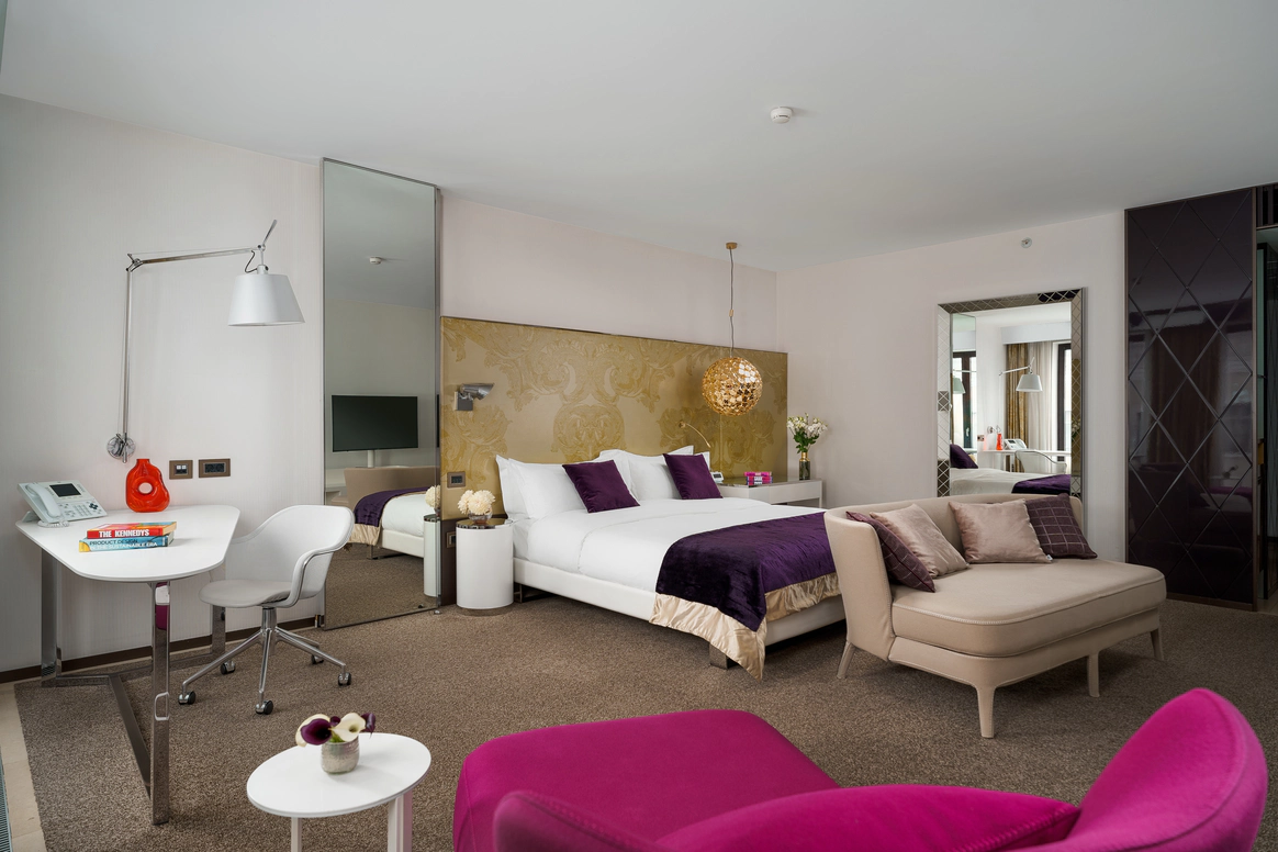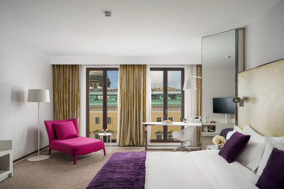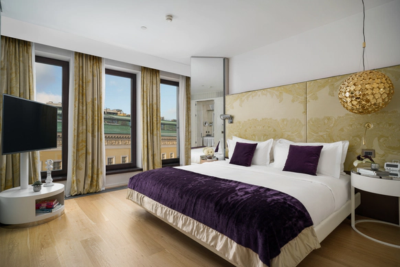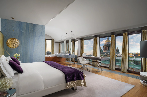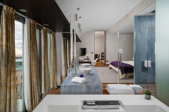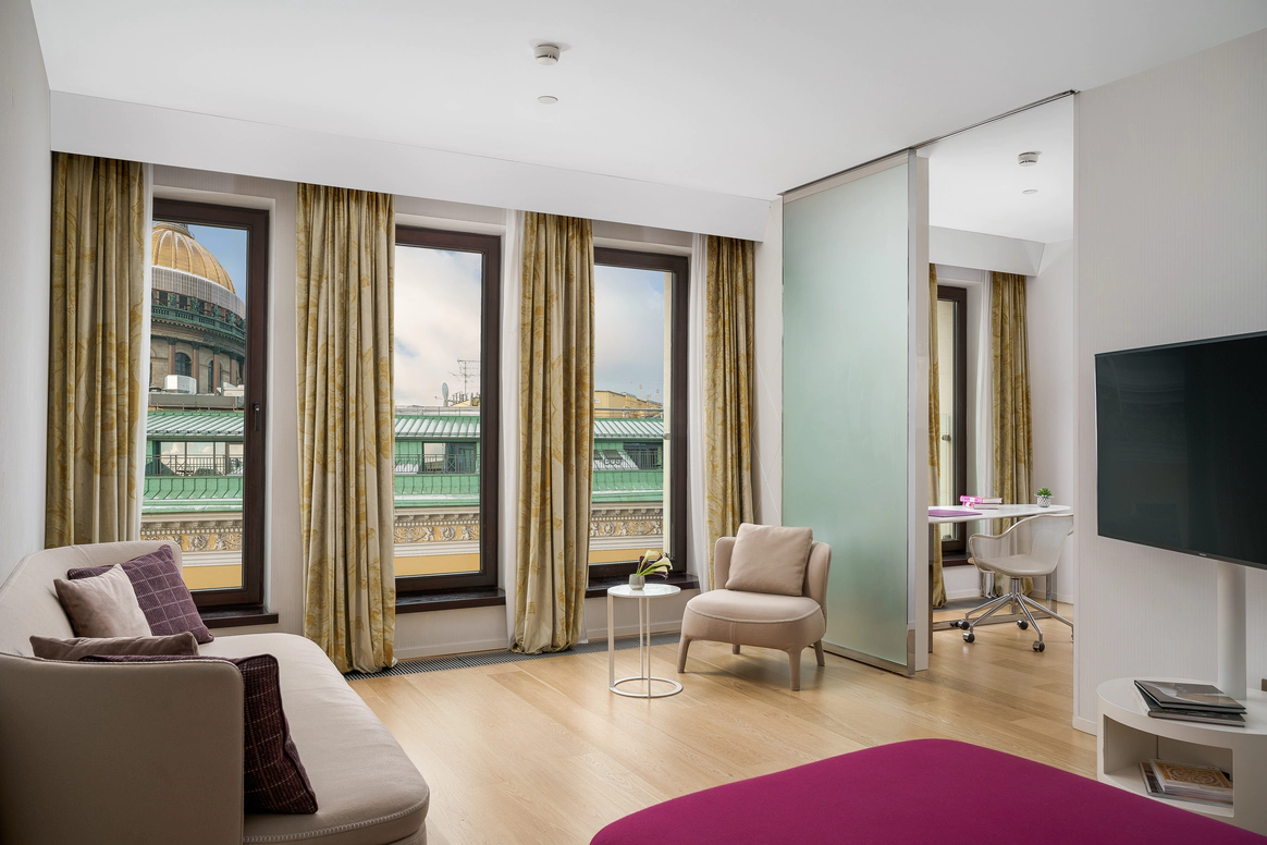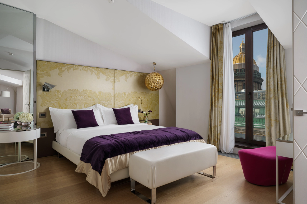 SO/ St. Petersburg - эксклюзивный дизайнерский отель, расположенный в самом сердце Санкт-Петербурга у Исаакиевского собора. Это место, где каждый уголок наполнен искусством и роскошью, благодаря таланту знаменитого итальянского дизайнера Антонио Читтерио. Вдохновившись работами Карла Фаберже, Читтерио создал интерьеры, которые можно сравнить с изысканными шкатулками с драгоценностями. Этим обусловлено появление в декоре узора в виде ромбов, а также светильников из 24-каратного золота Ortenzia Very Very Gold от Terzani и инсталляции из замороженного акрила от художника и скульптора Джакопо Фоджини. SO/ St. Petersburg располагает 137 номерами и люксами, каждый из которых является произведением искусства: от уютных SO Cozy, до мансардных SO Lofty и апартаментов SO VVIP с камином, двухместнои ваннои с видом на Исаакиевский собор. Во всех номерах каждая деталь тщательно продумана для комфорта и удовольствия гостей. Наслаждитесь эксклюзивными удобствами, такими как набор косметических принадлежностей от итальянского бренда профессиональной косметики из Тосканы - Comfort Zone, комплиментарный минибар, индивидуальное sleep menu, по которому каждый гость может выбрать себе подушку по вкусу, а также заказать маску для сна или попросить подготовить расслабляющую ванну. На крыше отеля расположен расторан HI-SO Terrace, который с наступлением весны становится идеальным местом для созерцания белых ночей и бесконечного заката на фоне величественного купола Исаакиевского Собора и Адмиралтейства. Каждое блюдо в HI-SO Terrace тщательно подобрано, чтобы отразить лучшее из сезонных ингредиентов. Кулинарные шедевры, созданные талантливыми поварами, предлагают не только изысканный вкус, но и визуальное наслаждение. Сочетание высококлассного сервиса и авторской кухни создает атмосферу, которая делает каждое событие особенным – будь то романтический ужин при свечах или эксклюзивная вечеринка в кругу близких друзей. Авторские коктейли, поданные под открытым небом, лишь дополняют этот незабываемый опыт. Наша инфраструктура включает два ключевых пространства — ресторан HI-SO Terrace и банкетный зал SO Lounge, которые идеально подходят для создания незабываемых моментов в вашем важном дне. Ресторан HI-SO Terrace — это настоящая жемчужина отеля, расположенная на крыше с потрясающими видами на Исаакиевский собор и Адмиралтейство. Площадь террасы составляет 150 квадратных метров, что позволяет организовать как камерную церемонию для близких, так и масштабное торжество для большого количества гостей. Гибкость площадки дает возможность адаптировать пространство под любой стиль оформления — от классической элегантности до современных концепций. При приватизации ресторана HI-SO Terrace можно организовать изысканный банкет на 80 гостей или выездную церемонию для 40 человек. Автоматическое остекление и мобильная тент-крыша обеспечивают легкость в управлении пространством, позволяя наслаждаться каждым моментом мероприятия независимо от погодных условий. Команда профессионалов готова удовлетворить любые пожелания молодоженов, начиная от изысканного меню, созданного шеф-поваром ресторана специально для вашего торжества, до индивидуального подхода к каждому гостю. Банкетный зал SO Lounge предлагает современное и стильное пространство площадью 100 кв.м., что позволяет комфортно разместить до 60 человек при банкетной р