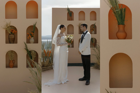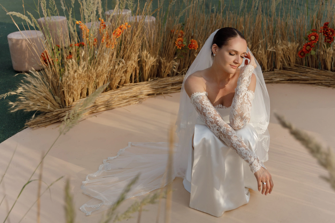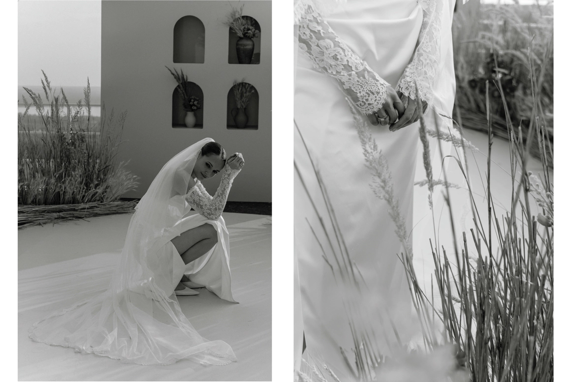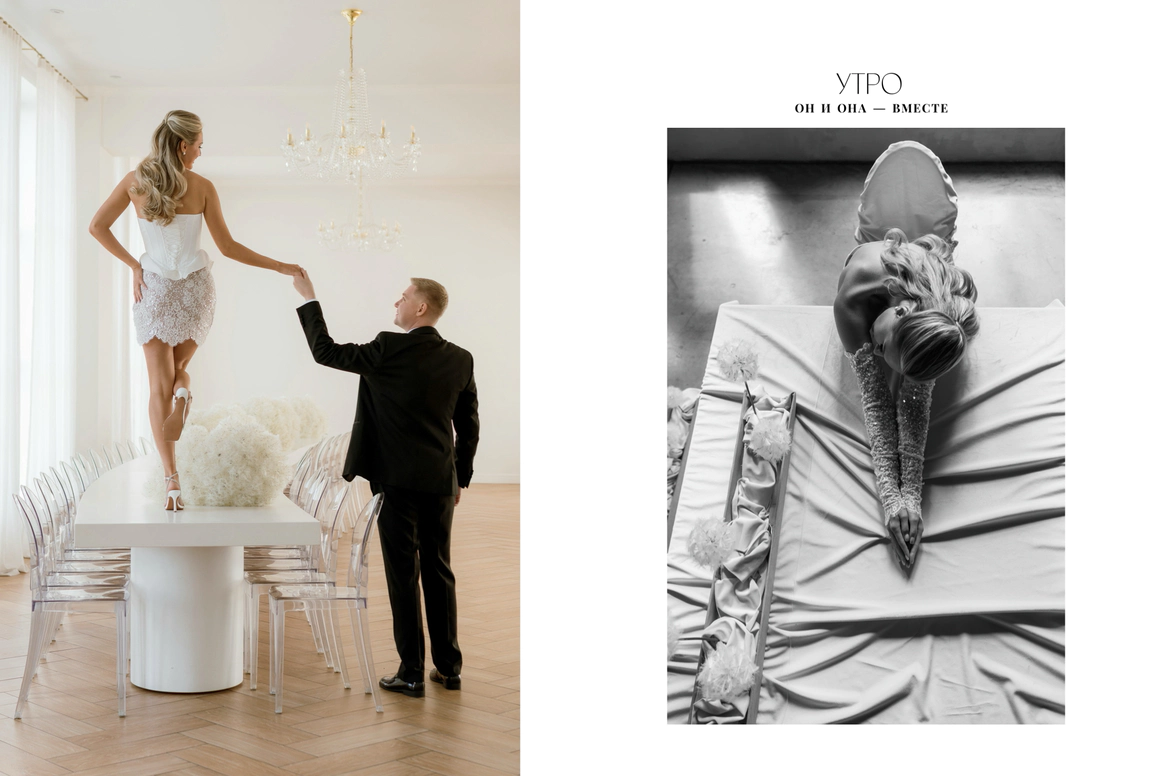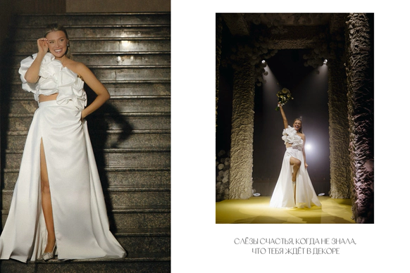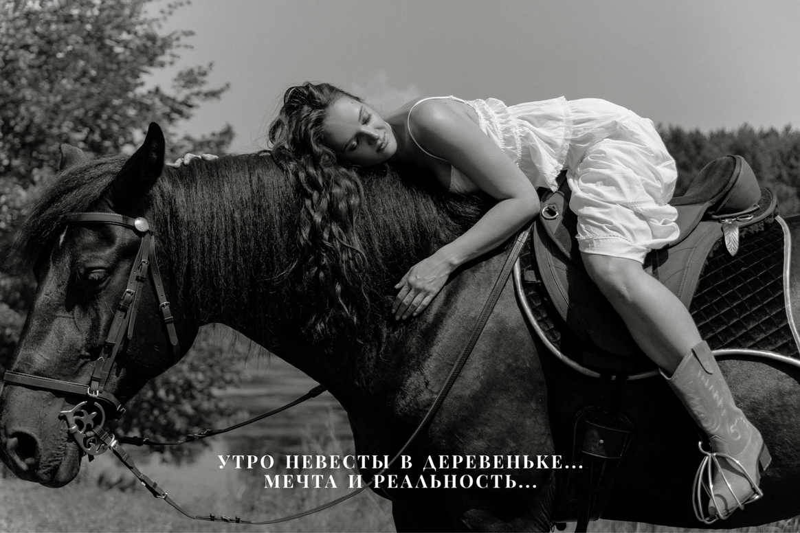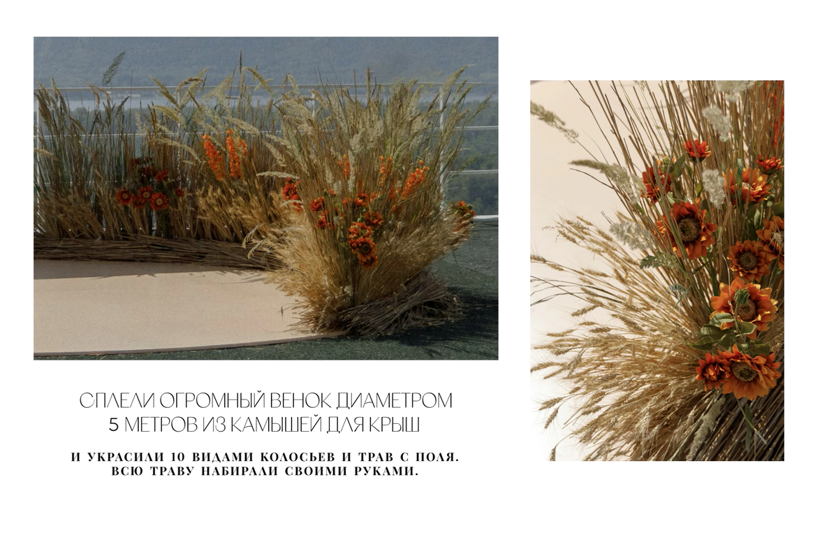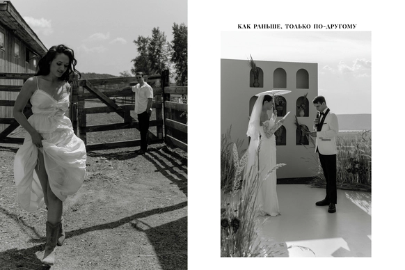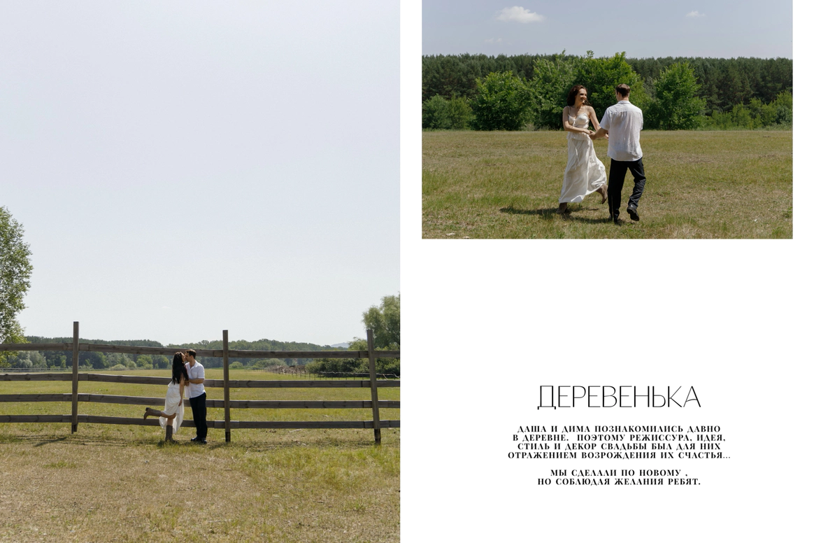 Их встреча в деревне много лет назад, любовь невесты к деревенским просторам, животным и простоте… А с другой стороны работа с модными заказчиками переросла в стильную коллаборацию для свадьбы…