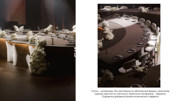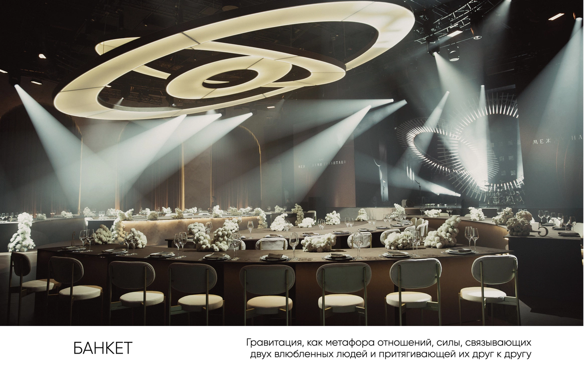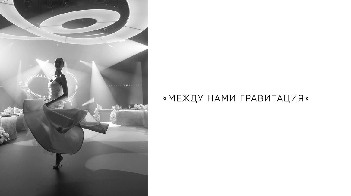 CONCEPT: гравитация, как метафора отношений, силы, связывающих двух влюбленных людей и притягивающей их друг к другу. Образ космоса и орбит использован для описания любви, как чего-то великого и бескрайнего.