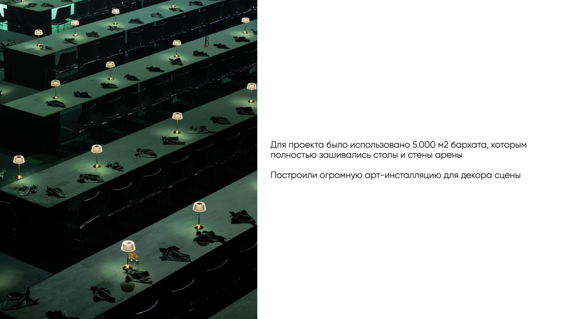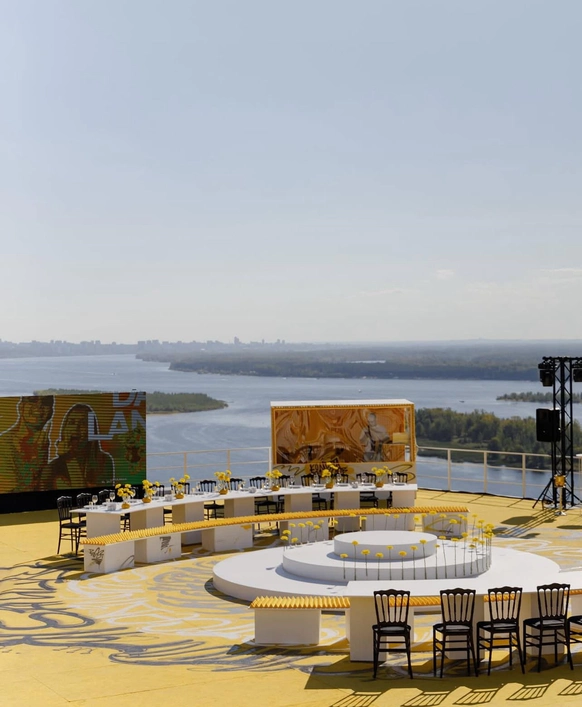 Самое сложное из обычного спортивного комплекса сделать модное и стильное пространство, учитывая цель мероприятия. Найти 450 штук одинаковых стульев в Самаре — еще сложнее. Мы пошли от обратного и, оставив местные не очень презентабельные стулья — сделали СТИЛЬ!