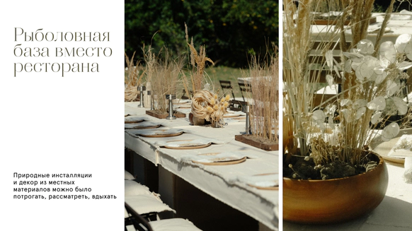 Мы сделали запоминающийся выезд, где показали настоящую Астрахань через местный ландшафт, продукты и материалы. Вся гастрономия строилась на принципе «нулевого километра».
