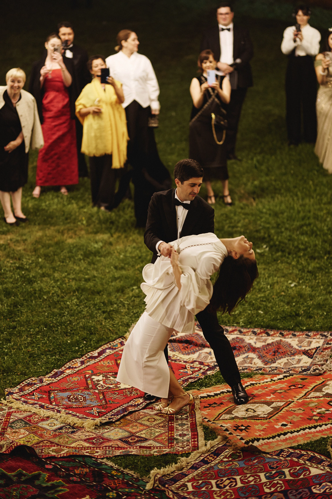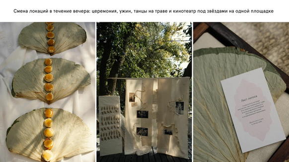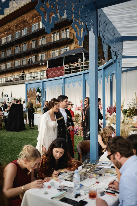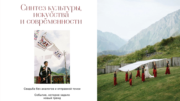 "Иностранным гостям хотелось показать настоящую грузинскую свадьбу - такую, какой они её представляли по фильмам и историям. А для местных, наоборот, сделать максимально негрузинский вариант и уйти от привычного формата, где главное - бесконечное застолье и давно остывшая еда." (София Гугуберидзе)