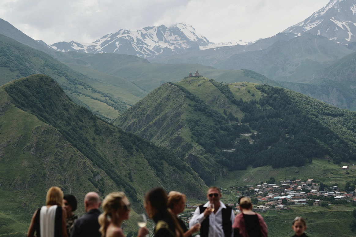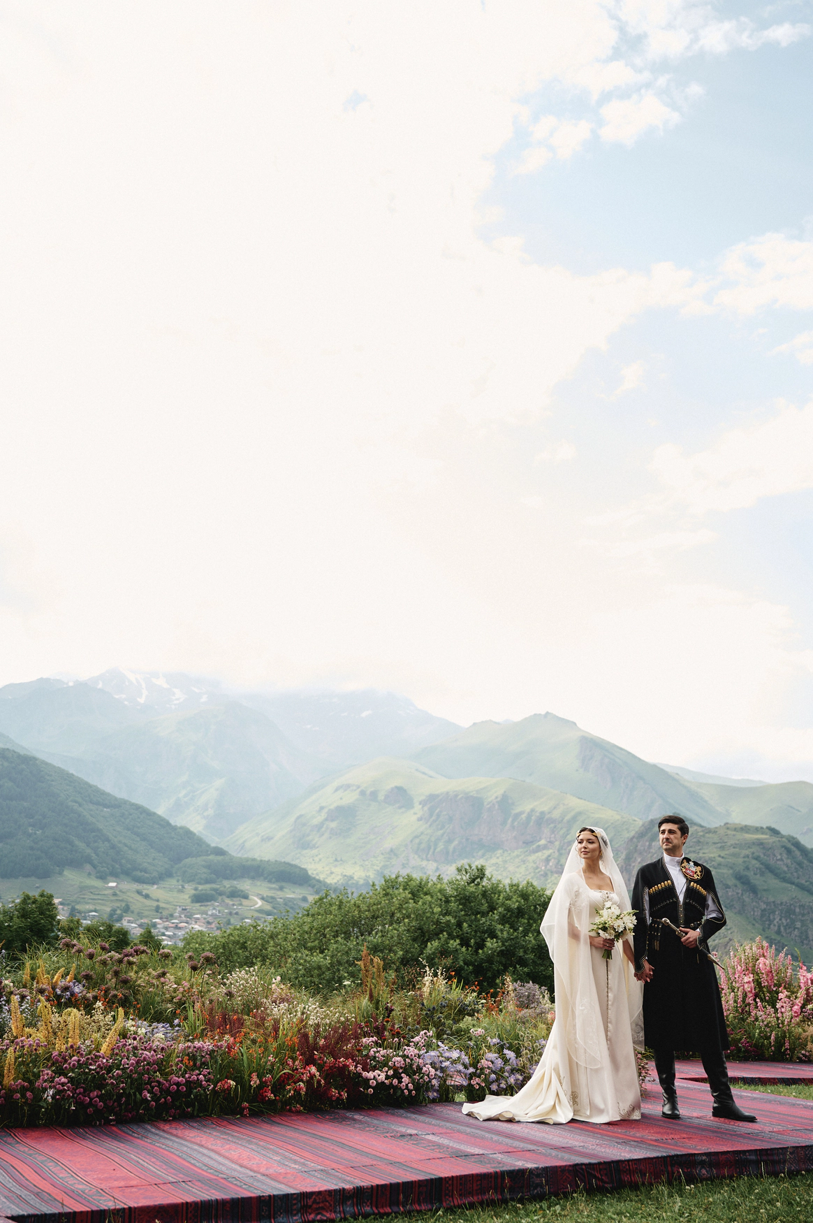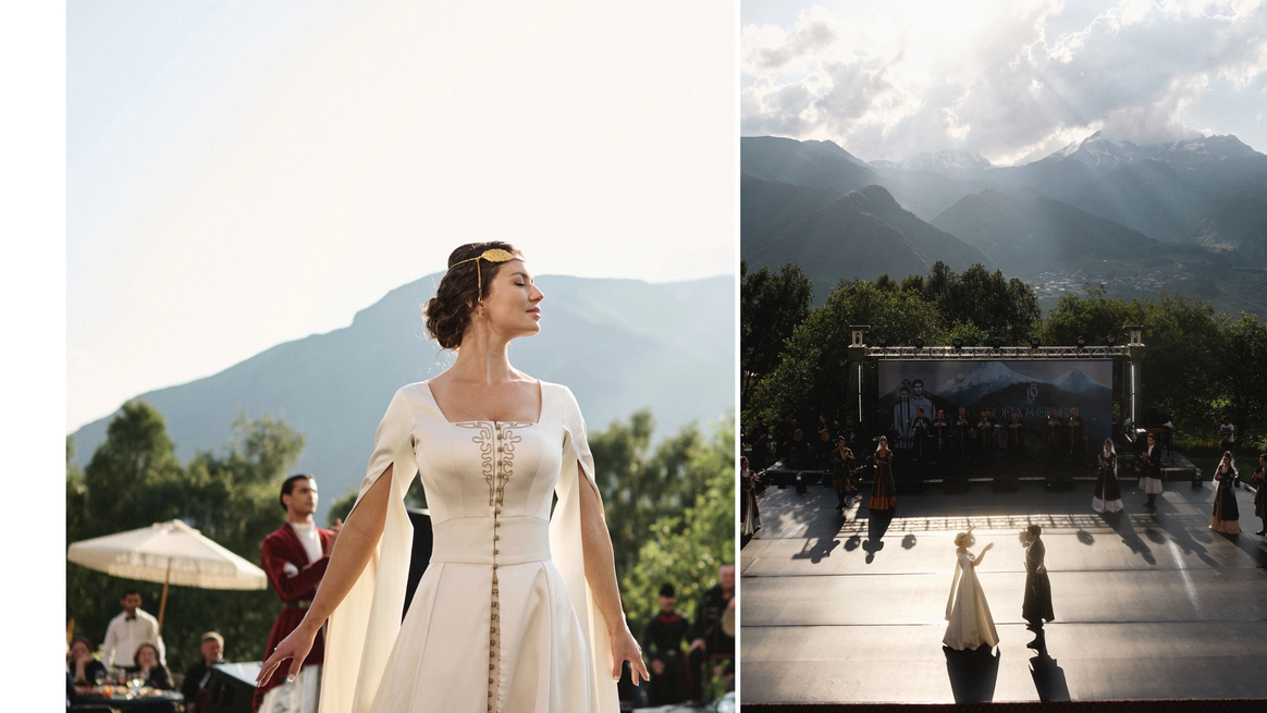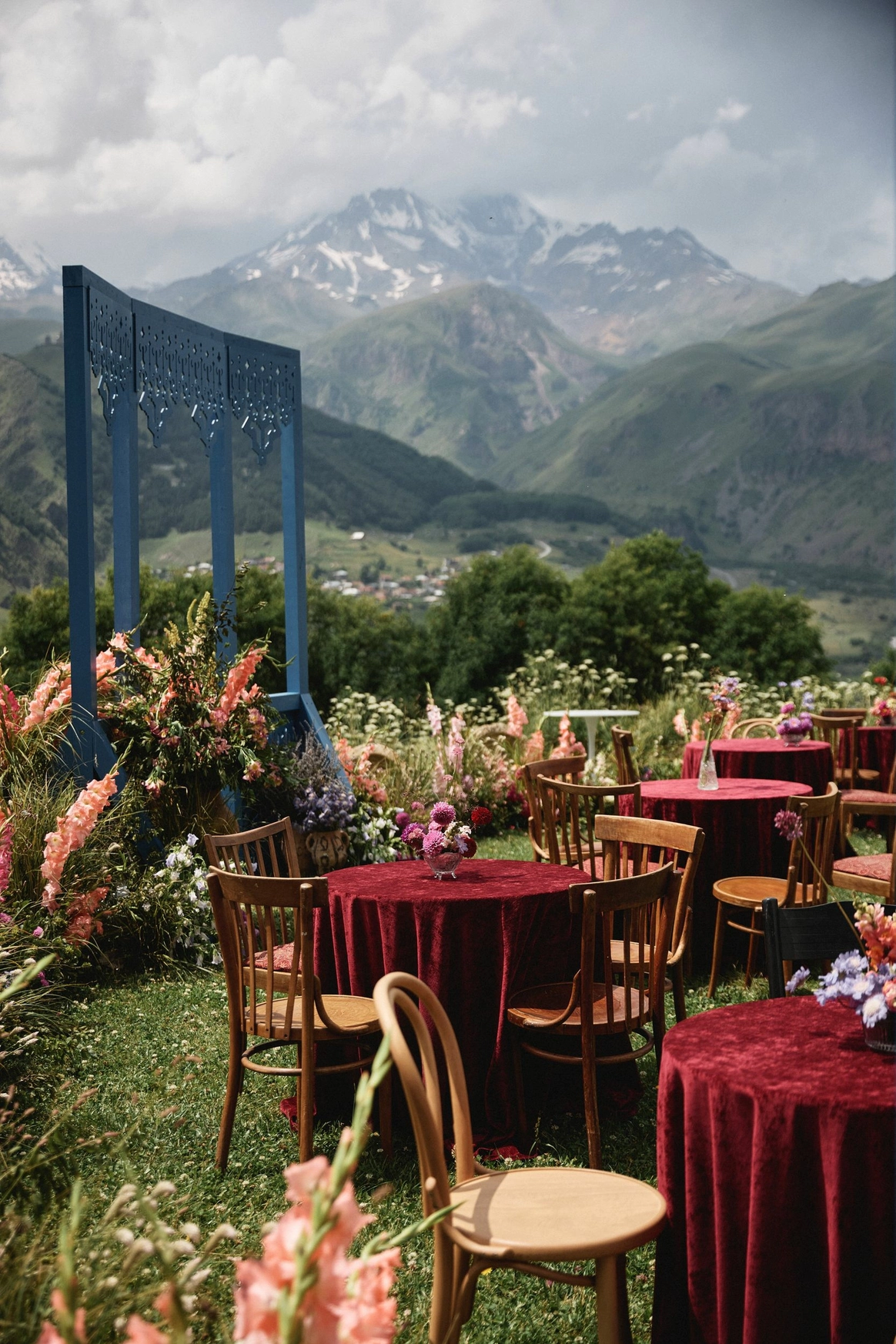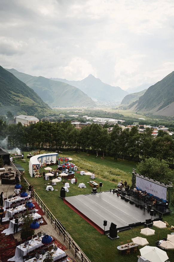 Интернациональная свадьба Софии Гугуберидзе и Георгия Амашукели - трёхдневное событие на 300 гостей у подножья горы Казбек в Грузии. Отель Rooms Hotel Kazbegi на три дня стал резиденцией пары, где грузинский колорит и масштаб встретились с современной эстетикой и фестивальной лёгкостью.