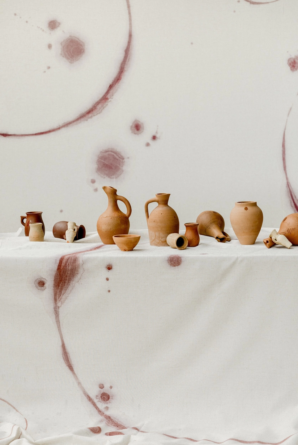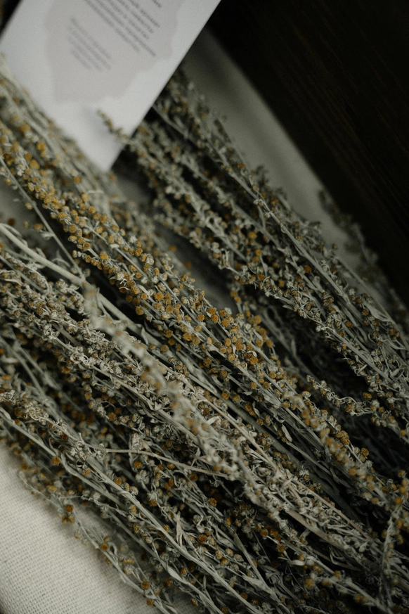 2. Декор создавался вручную из местных материалов: льняные/конопляные ткани, местные травы и камни, камыш и рыболовные крючки.