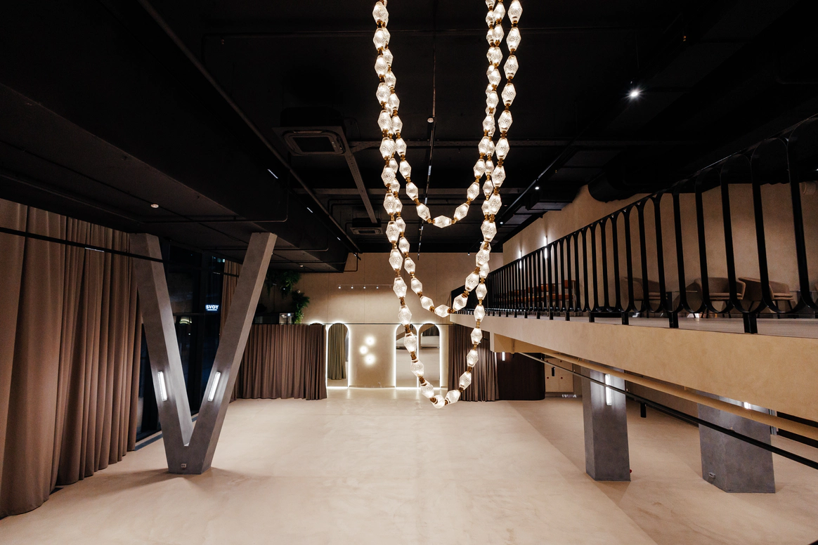 SVOY HAMOVNIKI — эксклюзивная площадка для мероприятий в самом сердце Москвы, в историческом и престижном районе Хамовники. Пространство выполнено в дизайнерском интерьере, оформленном в трендовом цвете Pantone 2025, что подчёркивает современный взгляд на эстетику и создаёт актуальную визуальную среду для мероприятий любого уровня. Центральным элементом зала стала уникальная дизайнерская люстра, которая формирует выразительный акцент и усиливает атмосферу статусности и изысканности. Высокие потолки и панорамные окна с видом на живописный пруд завершают образ пространства, создавая гармонию света, объёма и стиля. Преимущества SVOY Hamovniki: — Полная техническая и организационная готовность для проведения мероприятий любого формата: конференций, презентаций, корпоративов, вечеринок, свадеб и дней рождения. — Идеальное сочетание роскоши, современной эстетики и функциональности. — Удобная локация: всего минута езды от Садового кольца и восемь минут пешком от метро «Фрунзенская». — Атмосфера гостеприимства, высокий уровень сервиса и персональный подход. — Эксклюзивная система профессионального технического оснащения SVOY Sound, обеспечивающая безупречное аудиовизуальное сопровождение. Мы с удовольствием встретимся с вами, чтобы подробно обсудить все аспекты и дать возможность лично оценить уникальную атмосферу и возможности нашей площадки.