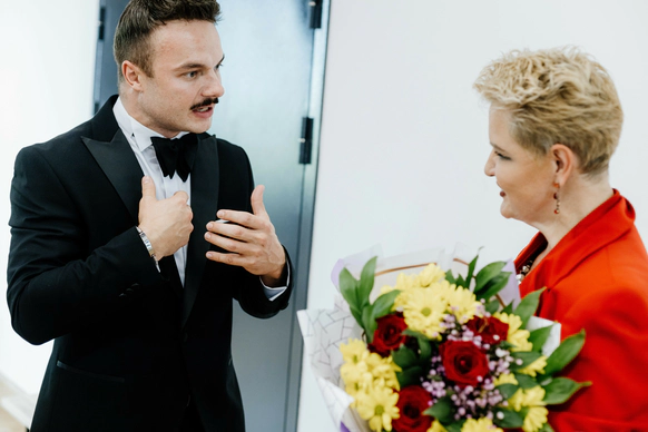 Ваш очень важный вечер, нужен только эксклюзив, перфоманс, Стиль безупречен, речь поставлена - no competitors, no comments! И нет возможности не научить, не научиться никому, Я не веду ваши важнейшие события - я их живу.. Вам страшно выходить на сцену? Не поверите, мне тоже! Под рукавом не видно, но и у меня пошла мурашками вся кожа. Мне так же как отцу невесты трудно сдерживать слезу, Я так же как друзья от хохота под стол ползу! И мне не жалко душу нарезать на тысячи частей и раздавать, как торт на дне рождения. Но мне так страшно, что увидит кто-нибудь как падаю в кровать под утро от изнеможения. Как после всех речей и спетых трогательных песен. Я сутки не могу произнести ни звука, я как рыба бессловесен. Из-за любви к вам и желания прожить хоть на день ваше счастье, Я буду миллионы раз сгорать и фениксом из пепла подниматься, Чтобы в моих глазах вы видели своих эмоций сотни отражений. Включаю микрофон и говорю вам: "Добрый вечер, с вами Цибизов Евгений!".